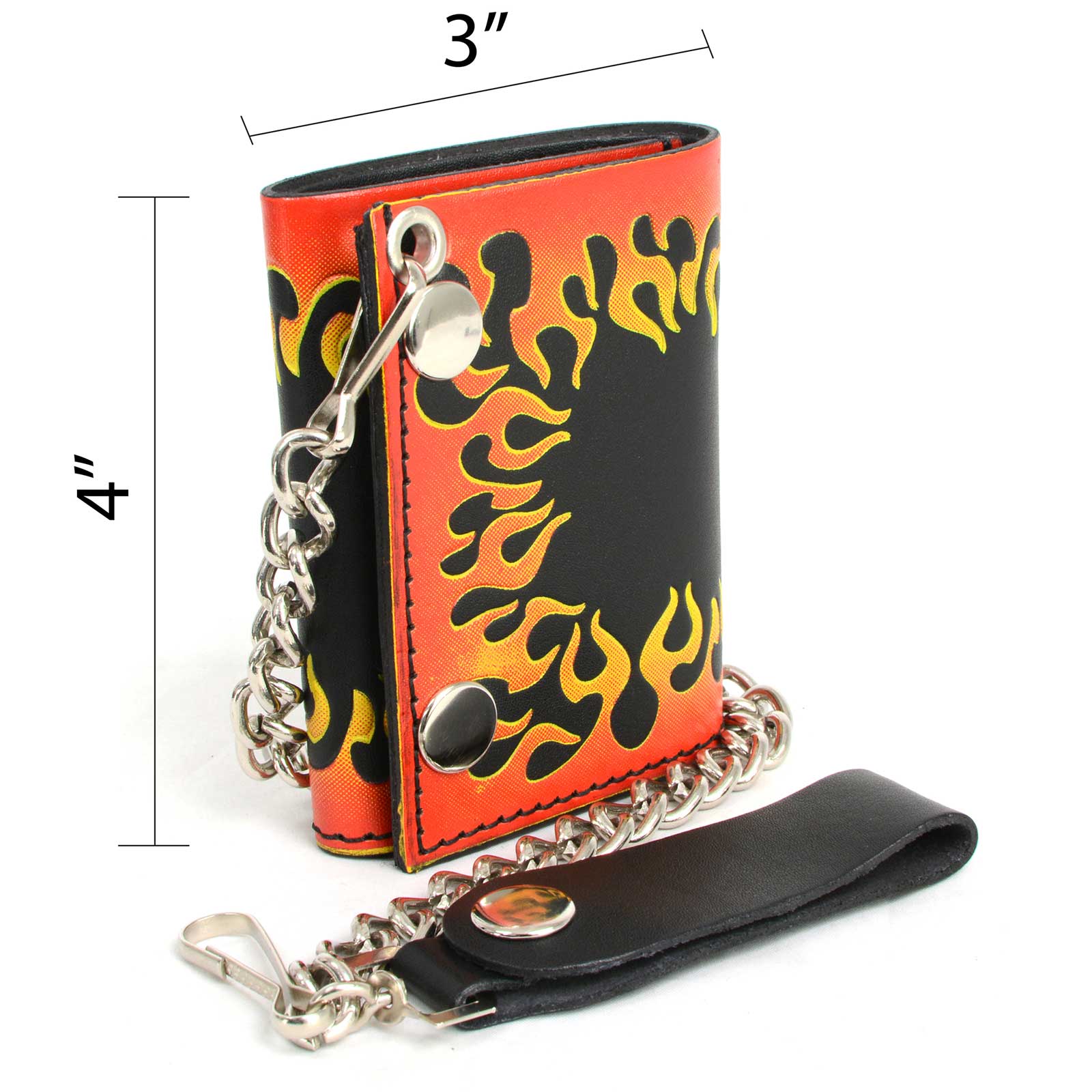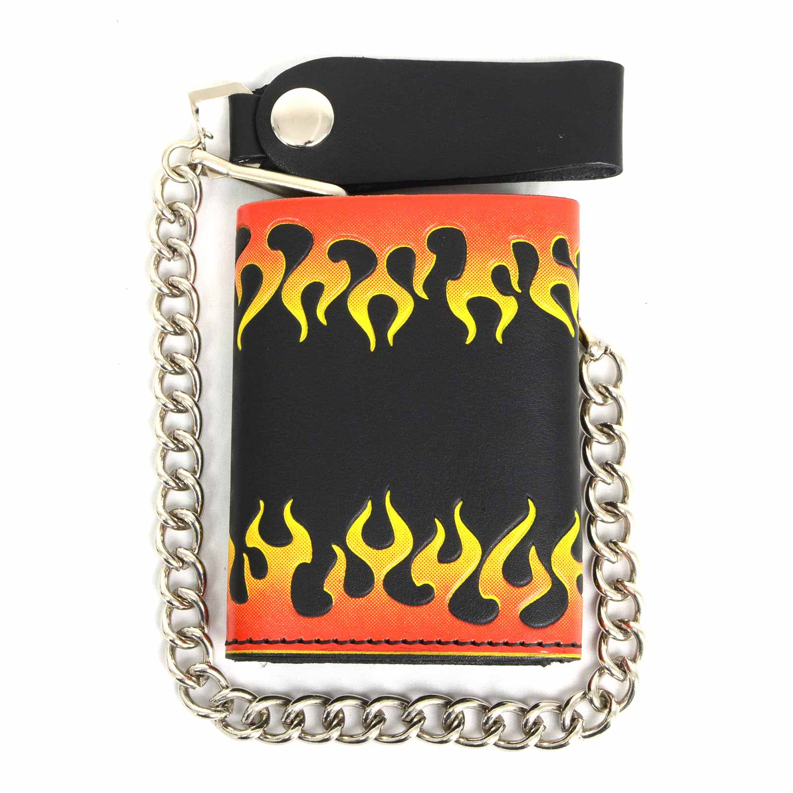 Milwaukee Leather MLW7832 Men's 4” Leather “Flamed” Tri-Fold Biker Wallet w/ Anti-Theft Stainless Steel Chain