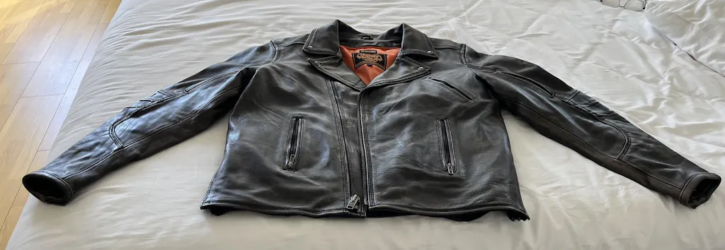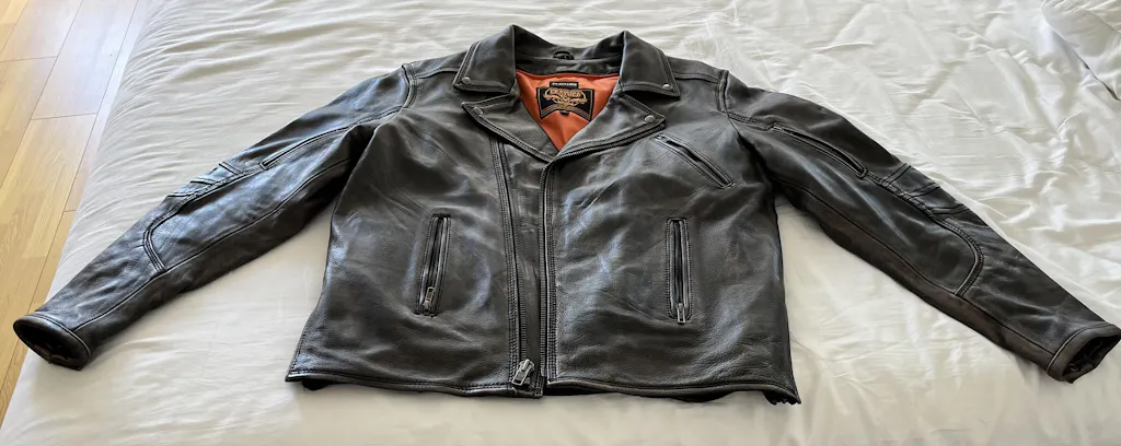 Needed a new jacket, wanted one to match my bike, 2015 Indian Chief Vintage. You are always worried about purchasing something online without trying it out, I was to. Checked out reviews, this jacket came with high marks. I ordered it according to their sizing chart and it is accurate. The jacket is heavy, made of quality leather. It has 2 concealed carry pockets on the inside which I’ll never use, so I can’t say anything about those, I guess I can use them as extra pockets. I never really liked the belts that other jackets come with, they seem to just get in the way, This one has a couple of side zippers that you can use for that adjustment instead, and they work just fine. The jacket is very comfortable when riding, a bit warm with the lining in on 45* + days, but I run a bit warmer than most. With the lining out and the zippered vents open it was just fine. The build quality and looks are excellent, so much so that I ordered a pair of matching chaps. Will let you know what I think about them when get here. If you like this style of motorcycle jacket you can’t go wrong with this one, I’m very pleased with this purchase. Shipping was pretty fast, about a week to Oregon with no problems.