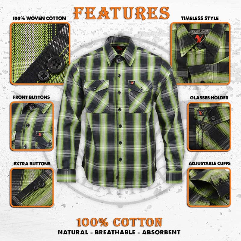 Milwaukee Leather MNG11652 Men's Black Grey and Red Long Sleeve Cotton Flannel Shirt