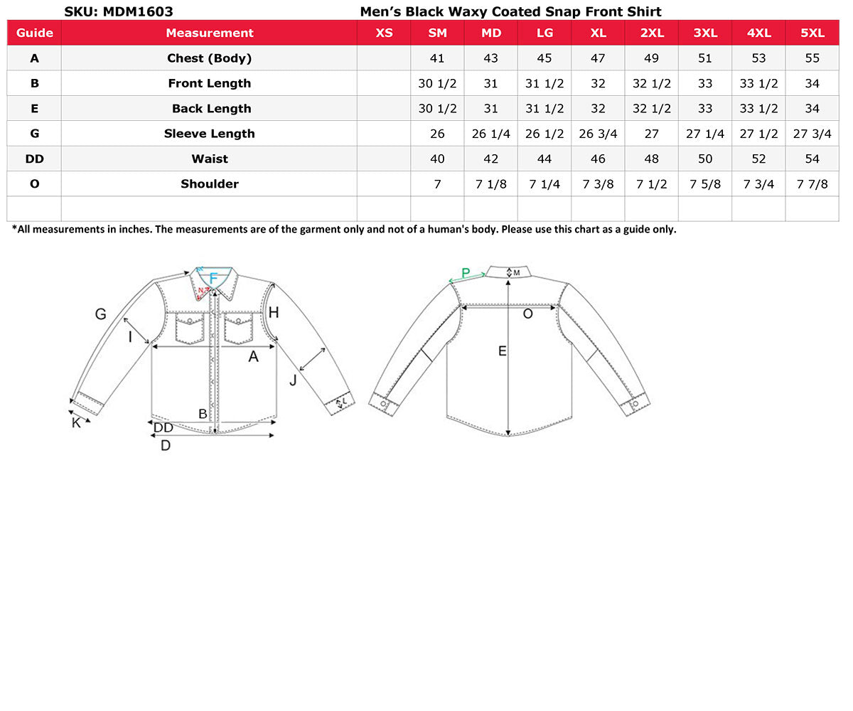 Milwaukee Leather MDM1603 Men’s Black Waxy Coated Snap Front Shirt