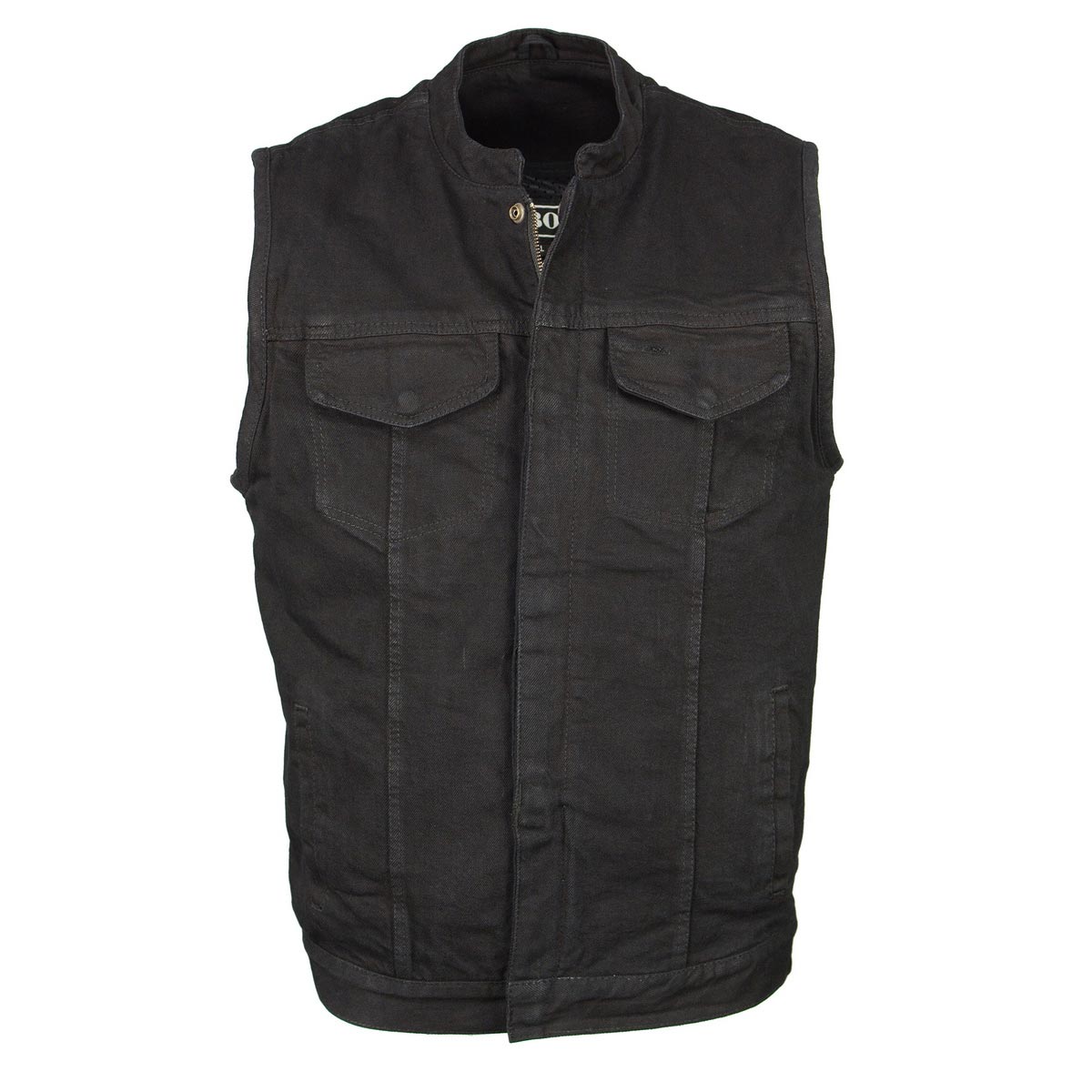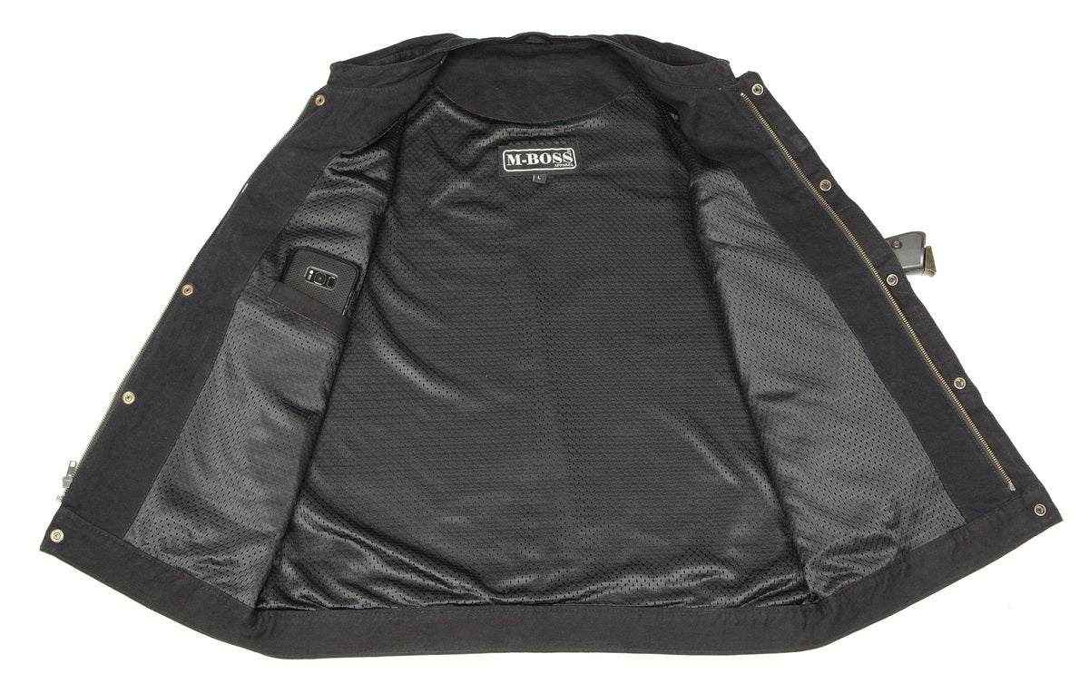 M Boss Motorcycle Apparel BOS13000 Mens Black Denim Club Style Vest with Hidden Zipper