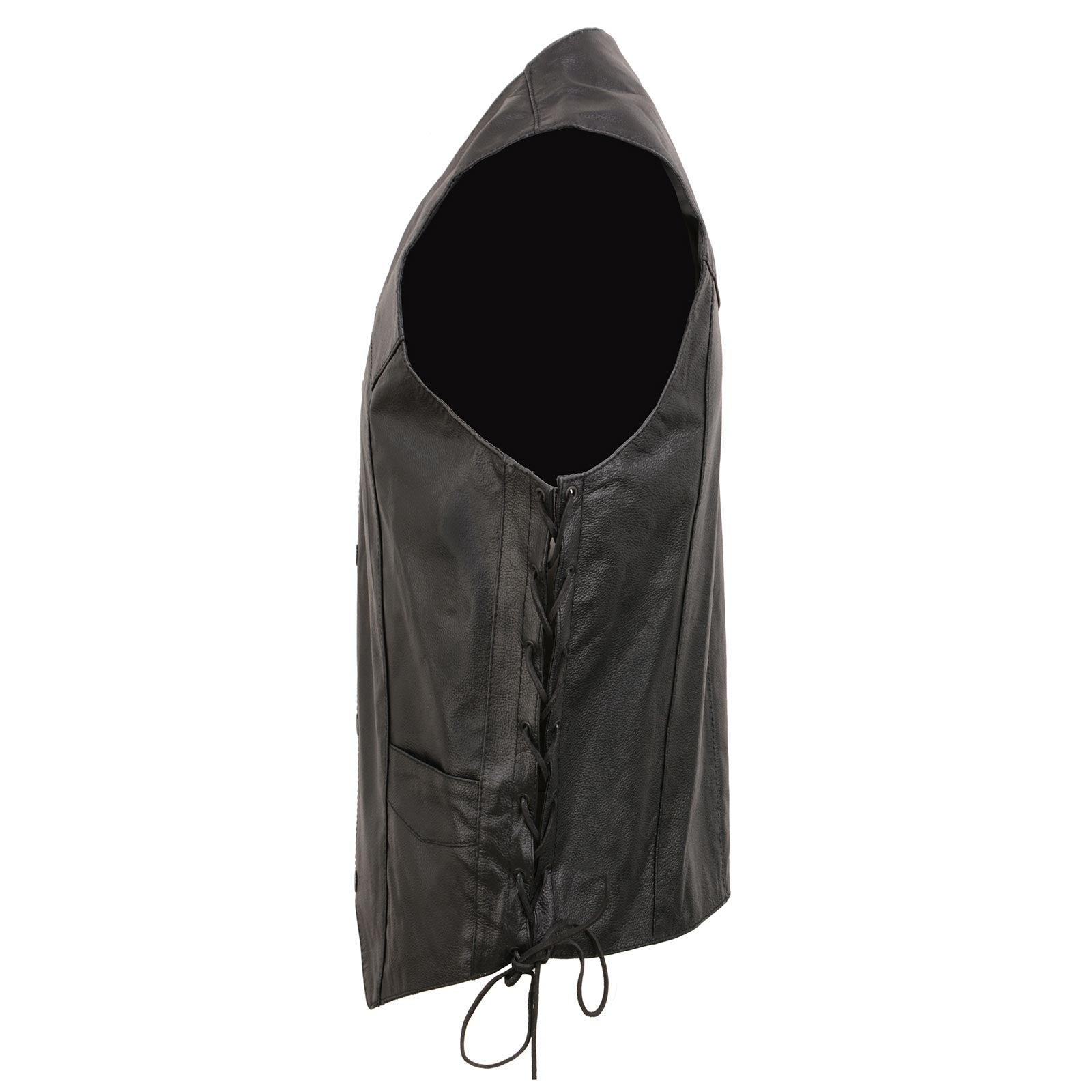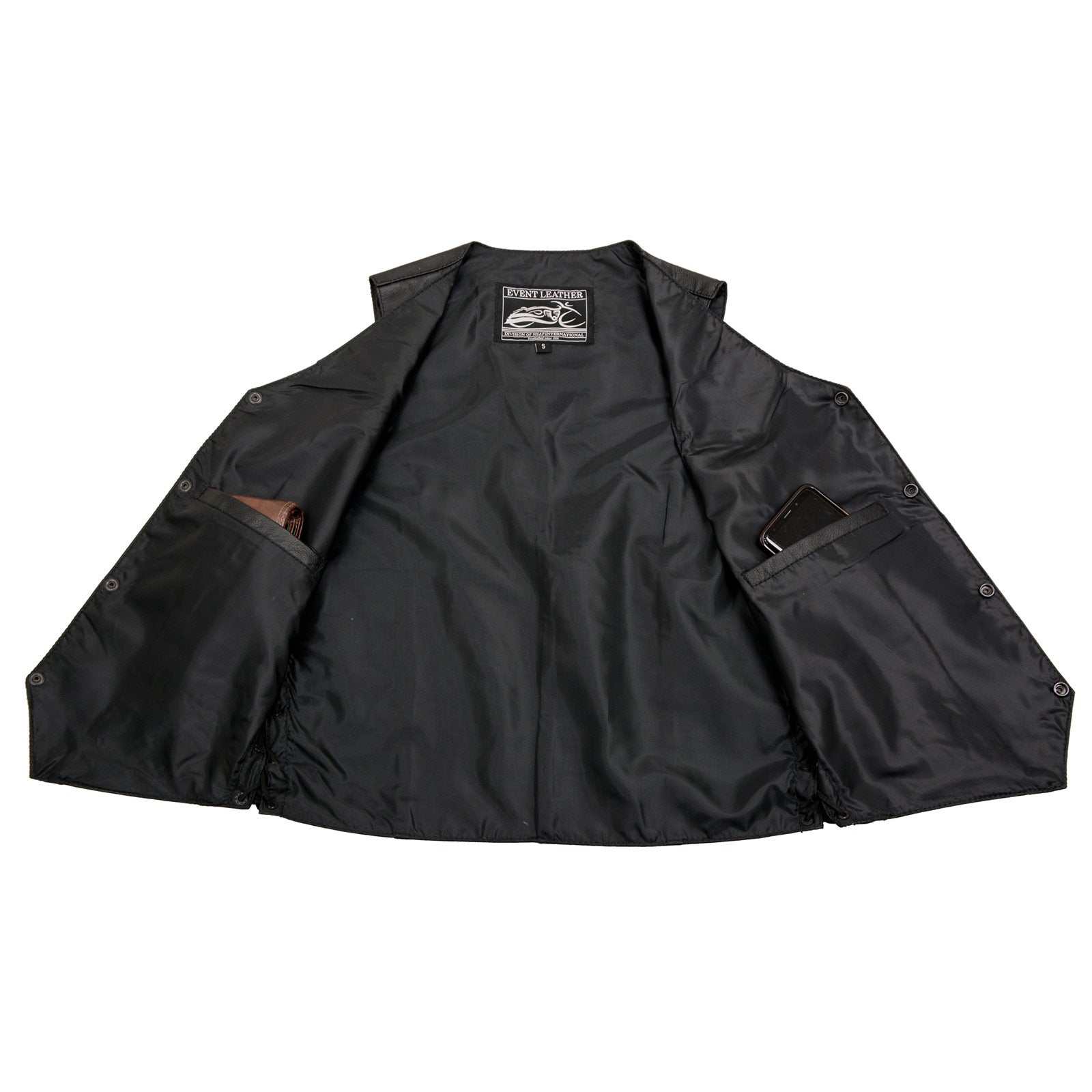 Event Leather EL1315 Men's Club Style Black Leather Motorcycle Riders Vest w/ Side Lace - Riding Club