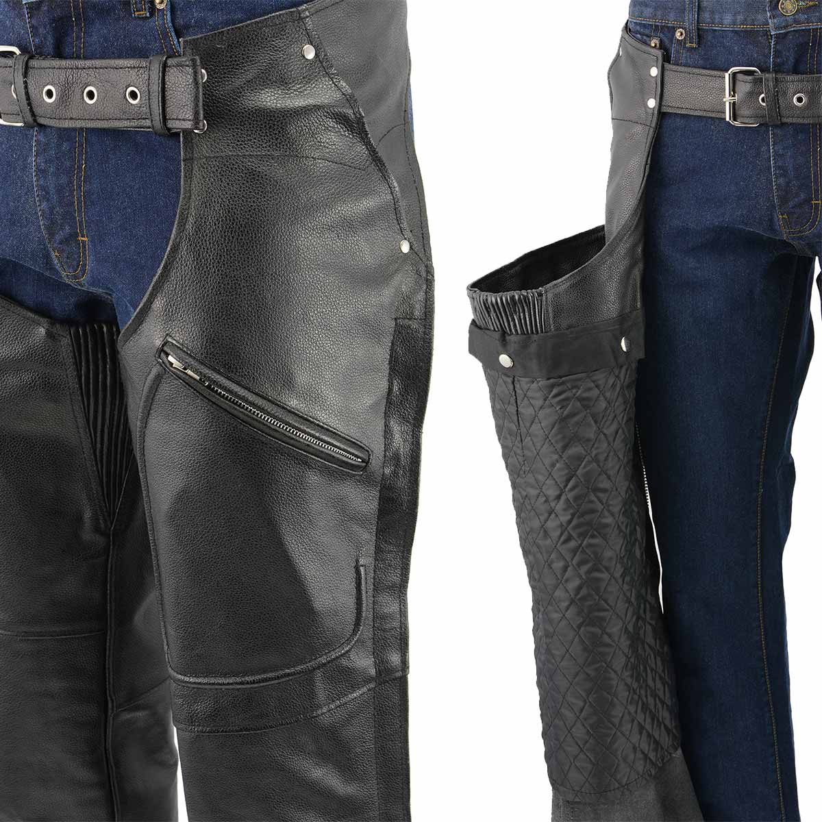Men's XS43404 3-Pocket Black Thermal Lined Leather Motorcycle Chaps