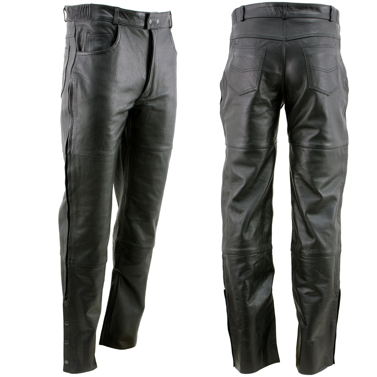 Milwaukee Leather LKM5726 Men’s Black Premium Leather Motorcycle Over-Pants with Side Zipper and Snaps