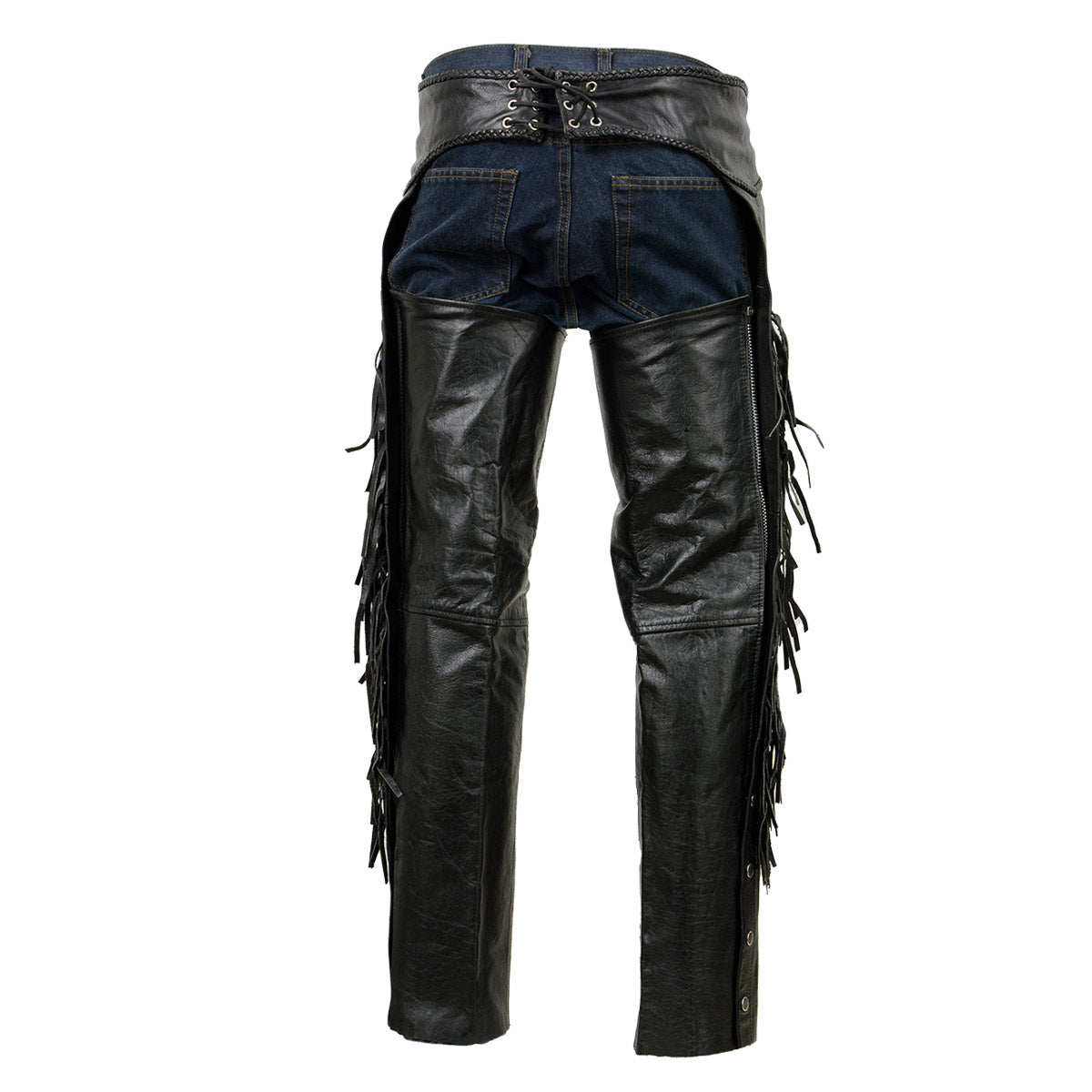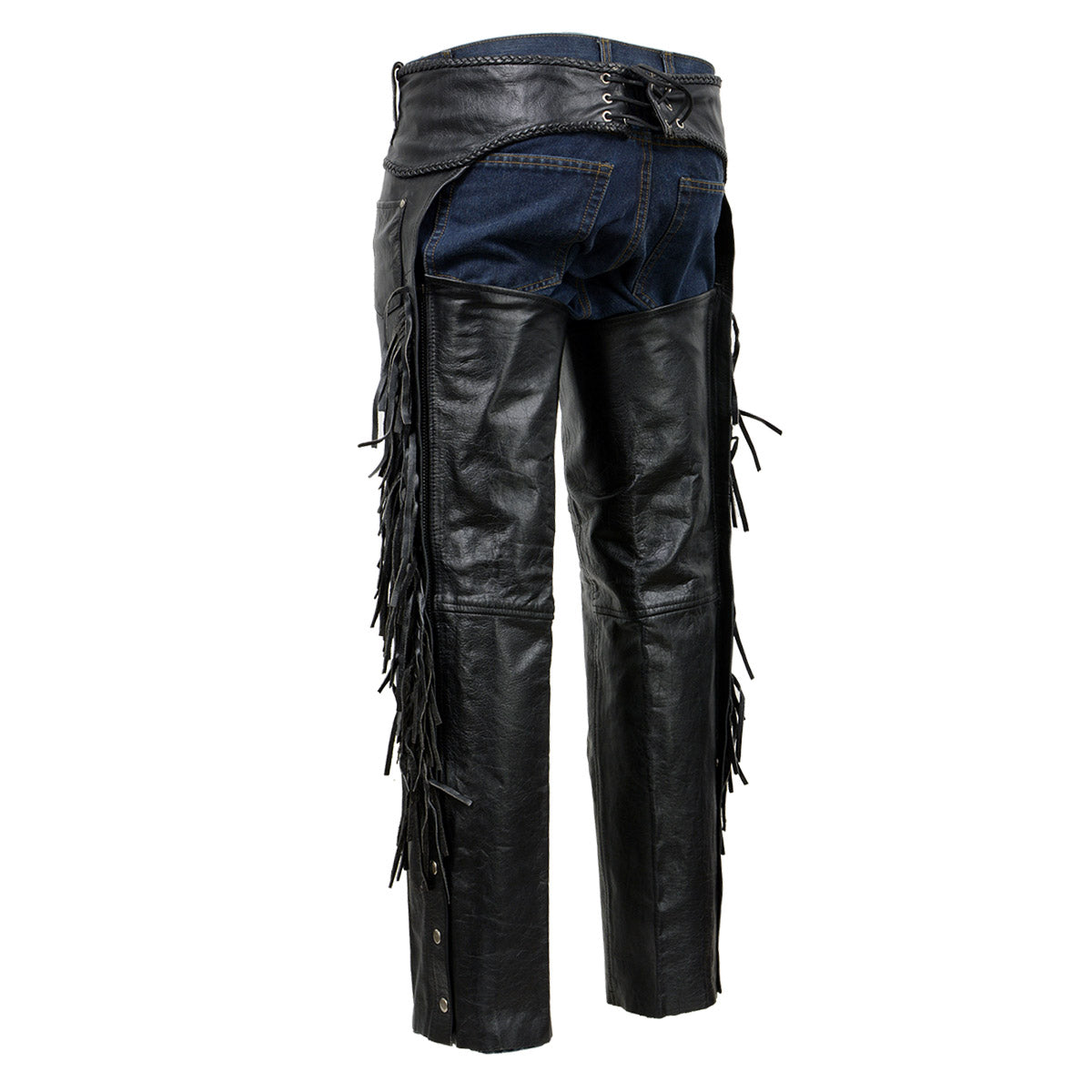 Milwaukee Leather ML1121N Men's Black Classic 'Braided' Fringed Motorcycle Leather Chaps