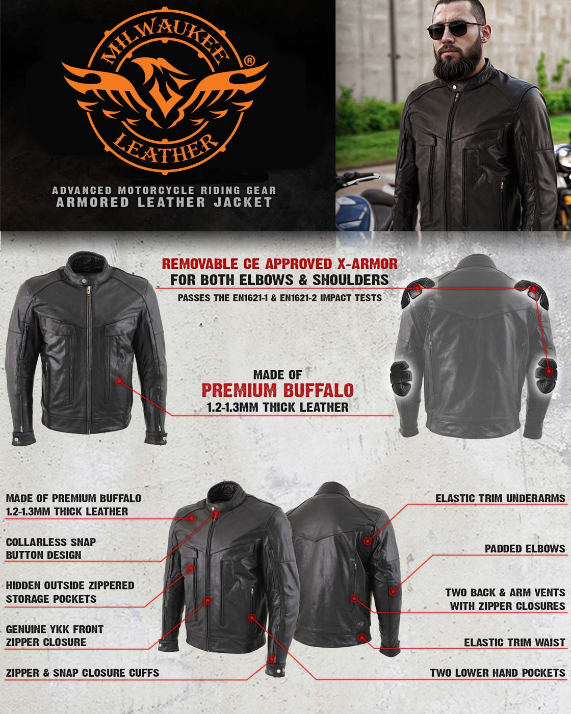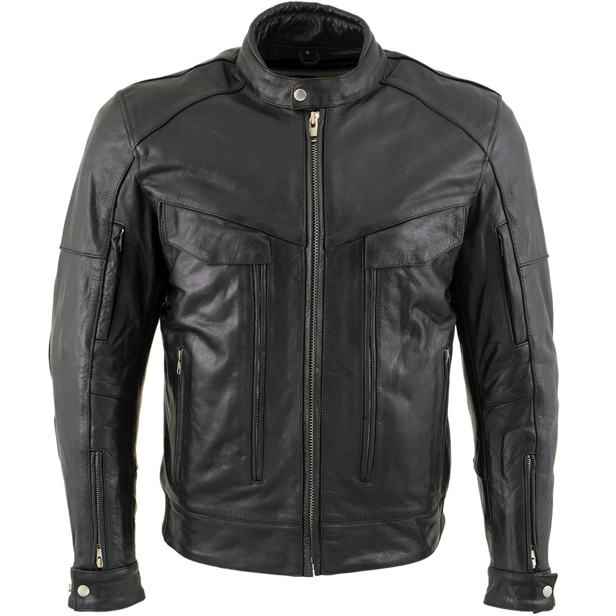Milwaukee Leather LKM1700 Men's Premium Black Buffalo Leather Cruiser Motorcycle Jacket with CE Armort Protection
