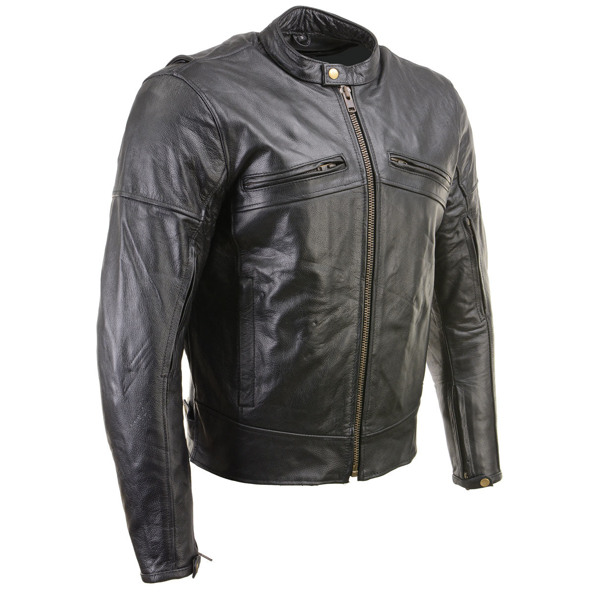 Milwaukee Leather LKM17015 Men's Premium Black Leather Vented Racer Style Motorcycle Bker Jacket w/ CE Armor