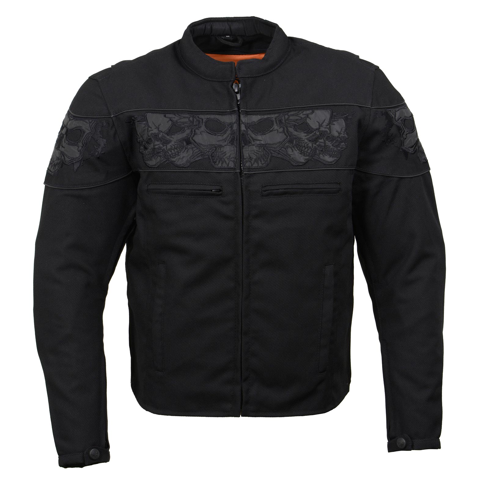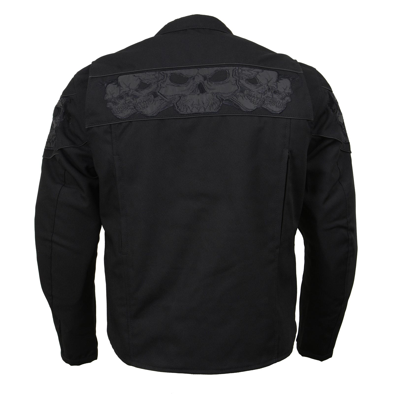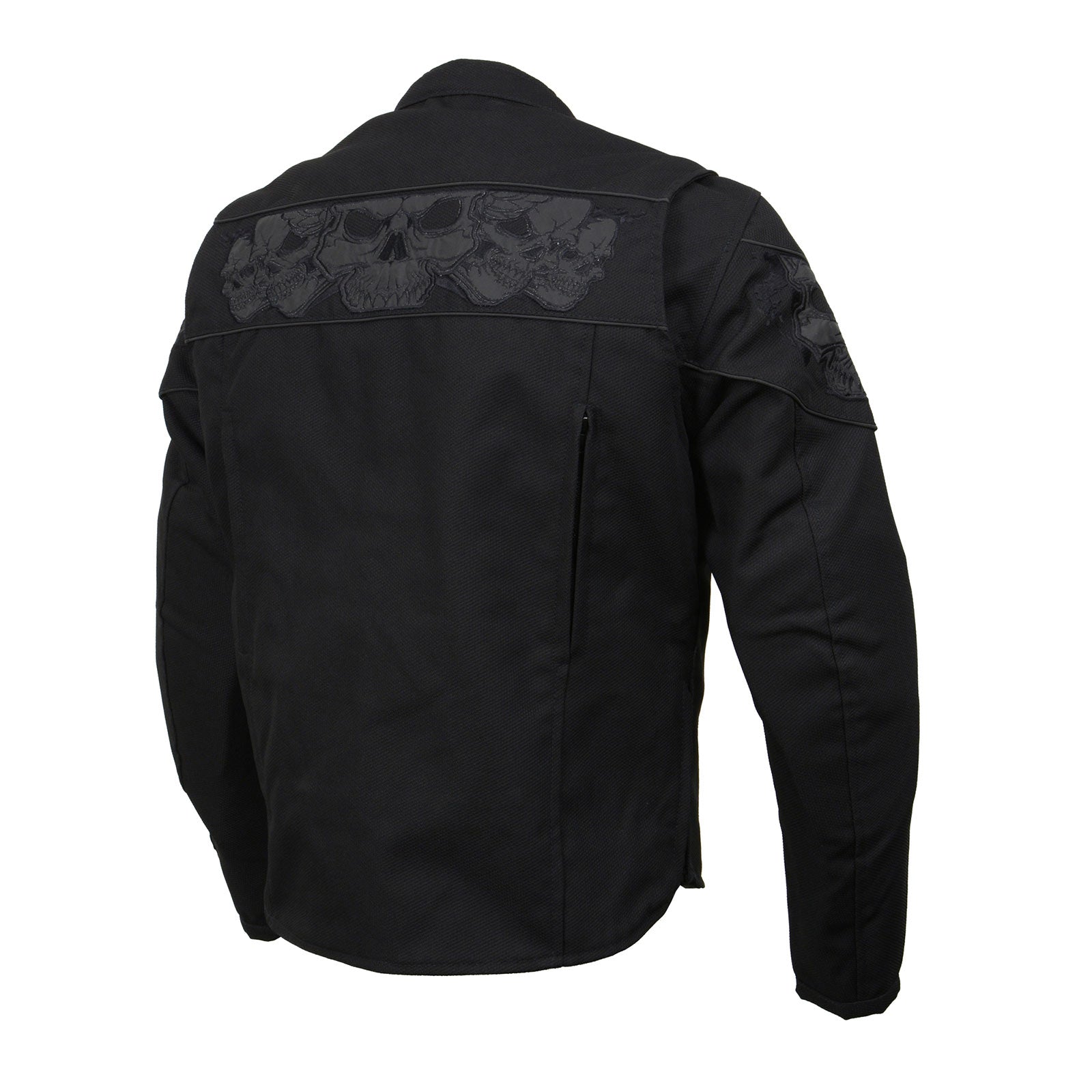 Milwaukee Leather MPM1730 Men's Black Padded Textile All Season Motorcycle Jacket w/ Reflective Skulls Artwork