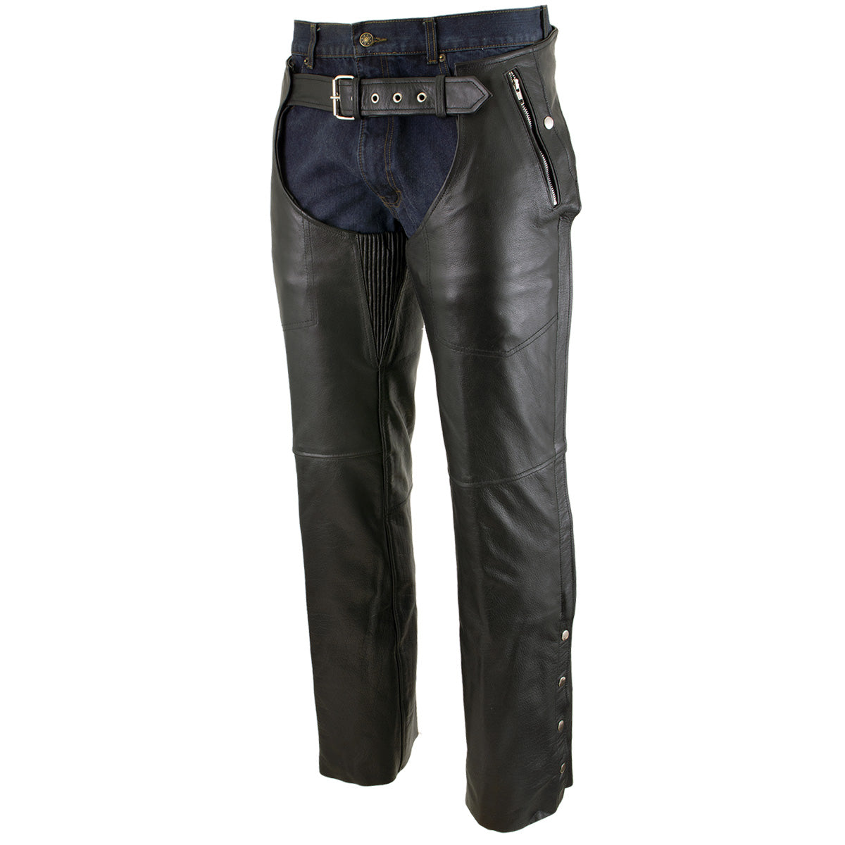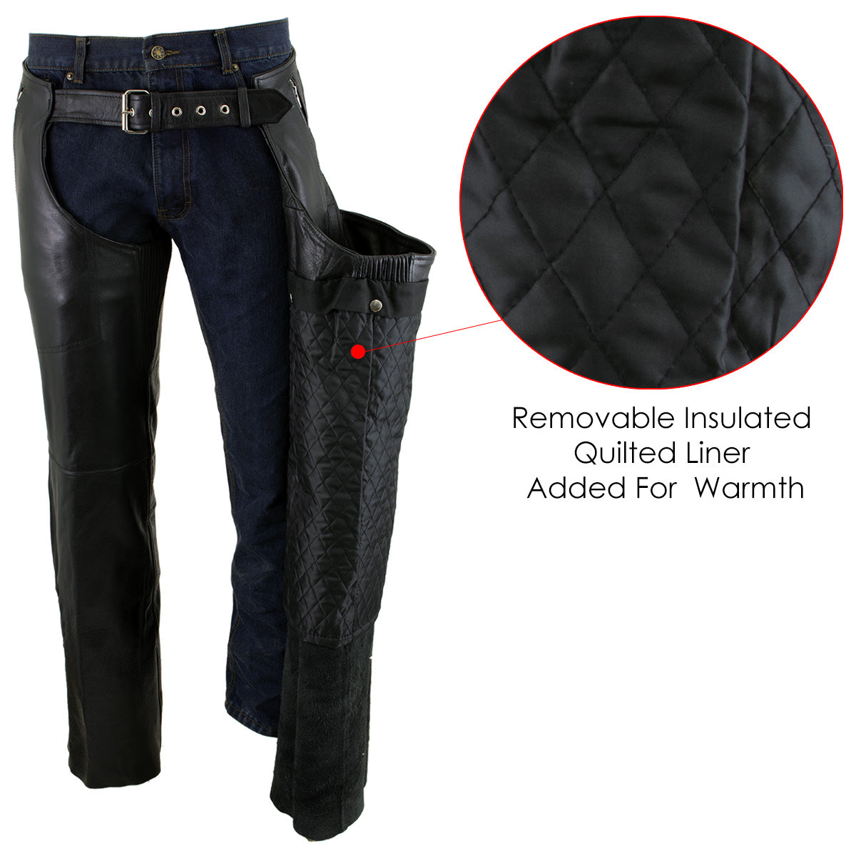 Milwaukee Leather LKM5714 Men's Black Premium Leather Motorcycle Riding Chaps w/ Removable Insulating Liner
