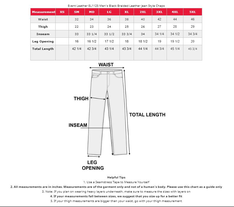 Milwaukee Leather ML1125 Men's Classic Black Braided Jean Style Leather Chaps