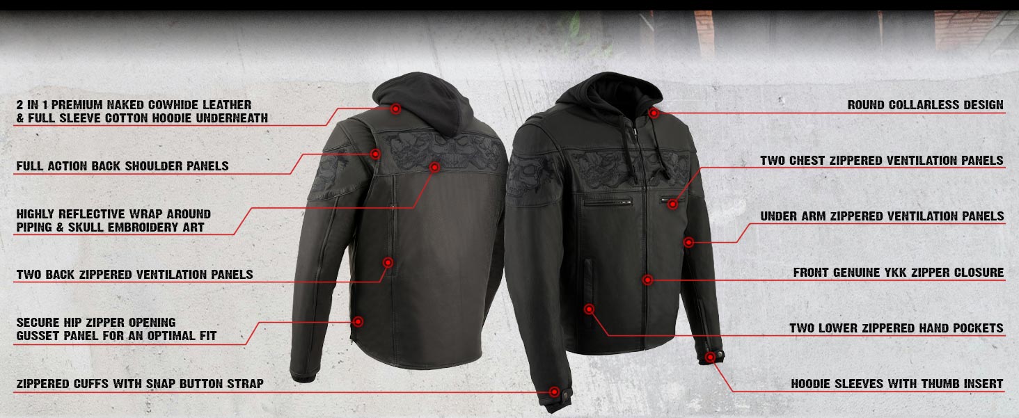 Milwaukee Leather USA MADE MLJKM5001 Men's Black Road Racer Premium Leather Motorcycle Jacket