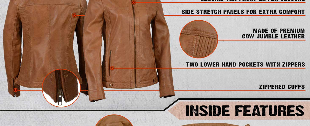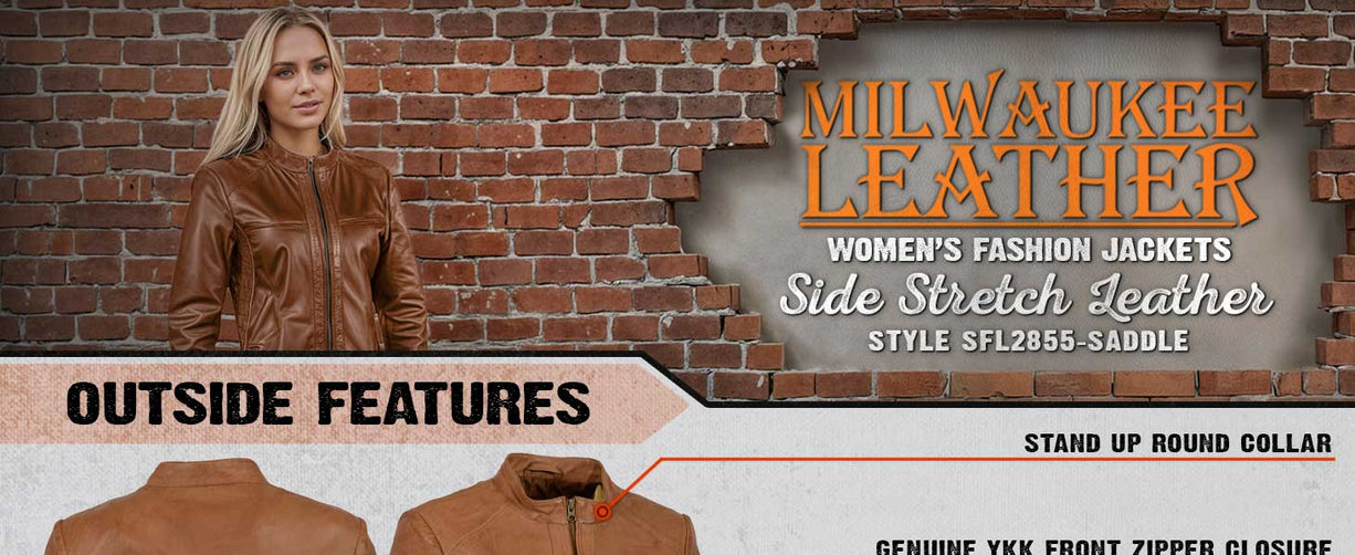 Milwaukee Leather SFL2855 Women's Saddle Zip Front Leather Jacket with Side Stretch Fitting
