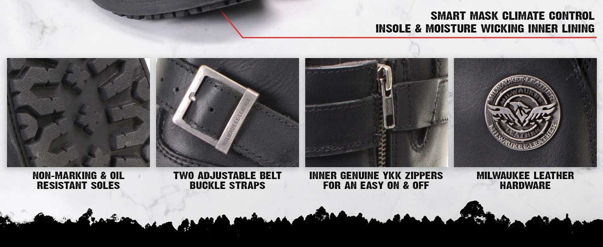 Milwaukee Leather Women's Black Triple Strap Fashion Boots with Platform Wedge MBL9437