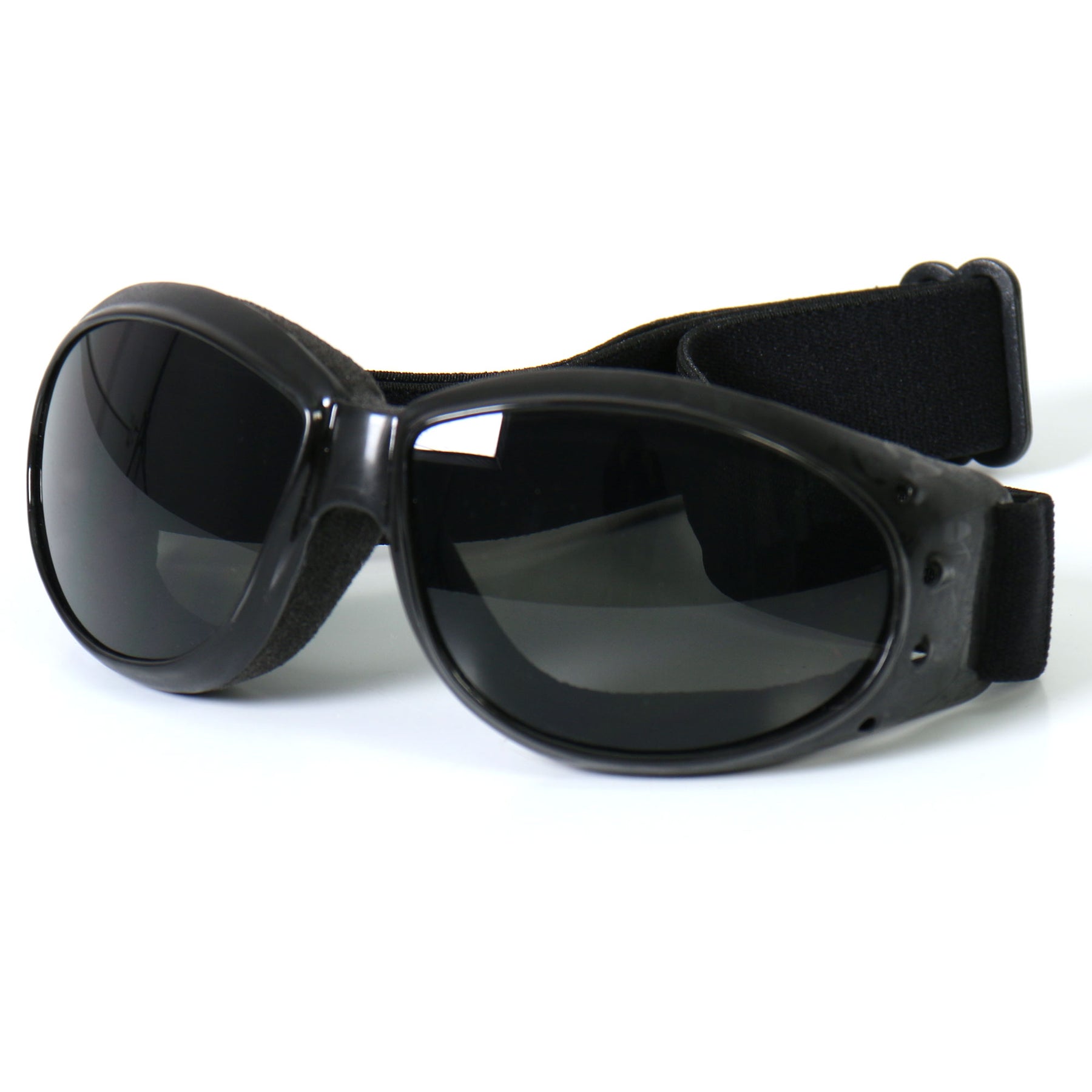 Our Eliminator Style Riding Goggles with Smoke Lenses offer outstanding peripheral vision with extra soft, light and airy neoprene foam padding, it’s no wonder these goggles are our best-selling yet! Equipped with shatterproof UV400 filtered and scratch resistant lenses, these unisex riding goggles provide the perfect protection for outdoor activities. Brave the elements wearing these Biker goggles! Order yours today!