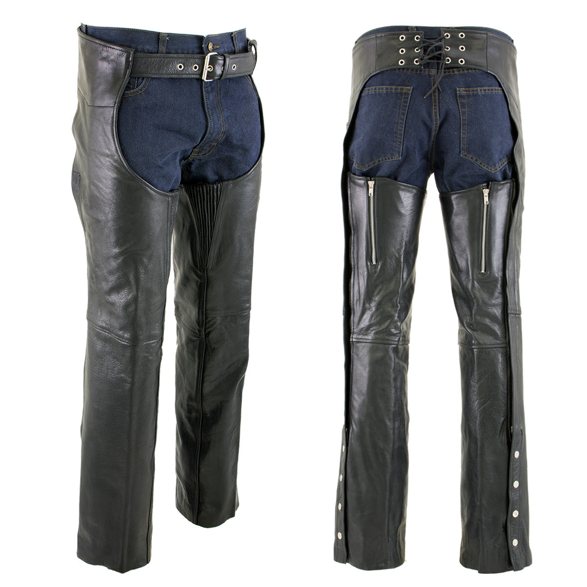Milwaukee Leather LKM5722 Men's Black Premium Leather Dual Comfort Motorcycle Biker Rider Chaps