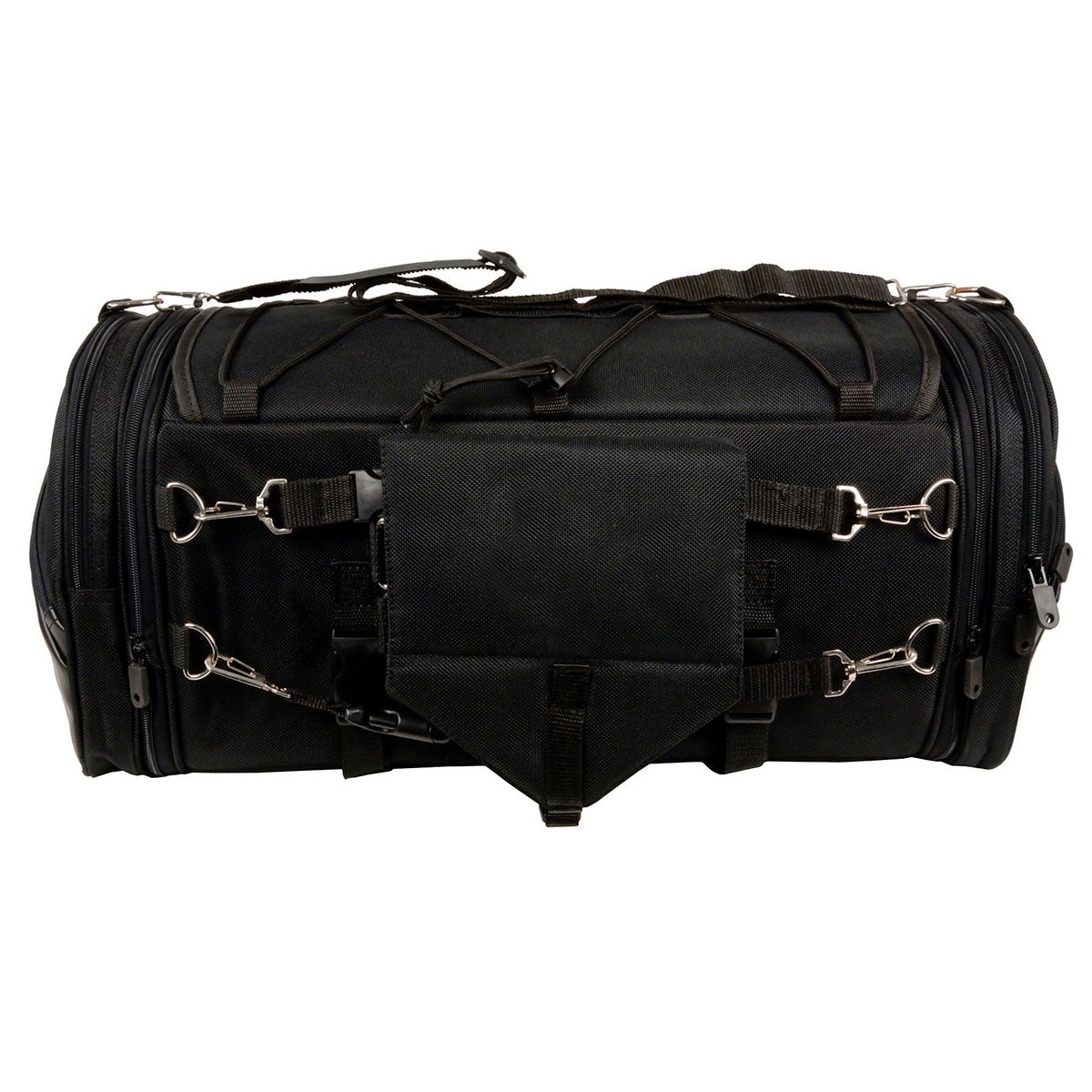 Built for Lengthy Excursions or Short Trips Across the City, The SH694 Is a Large Textile Duffle Style Bag with Plentiful Storage Capacity That Fits Any Motorcycle with Sissy Bars. It Features One Front and Two Side Zippered Pockets in Addition to The Large Main Storage Compartment and Has Quick Release Straps for Easy on And Off Action.
