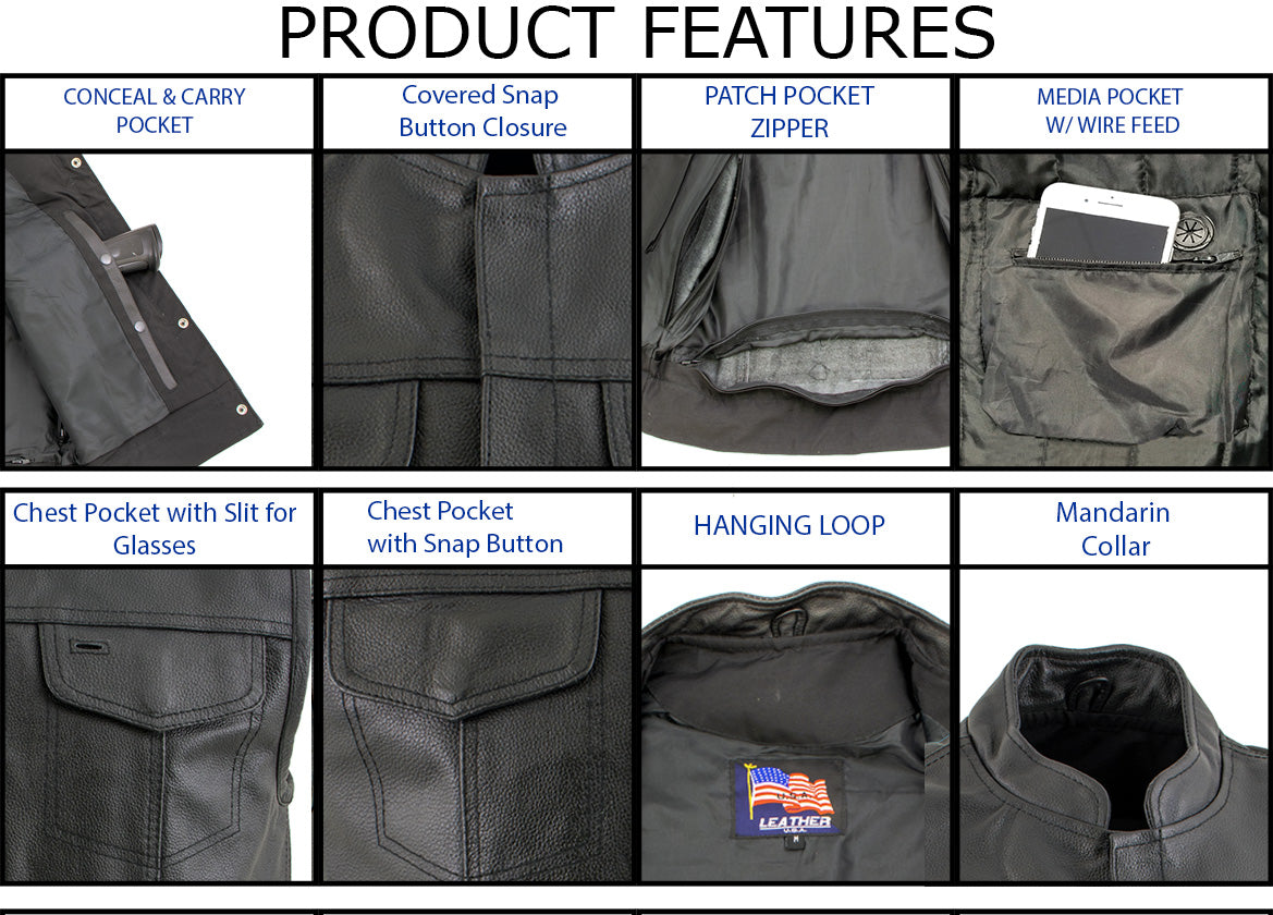 USA Leather 1205 Men's Black Combat Style Motorcycle Biker Ride Leather Vest