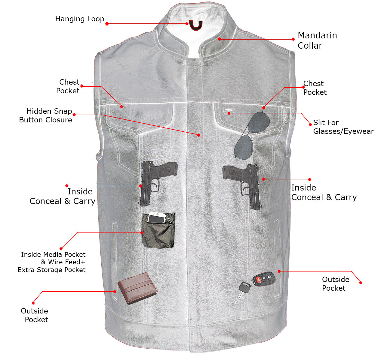 - Conceal and Carry Your Piece with Dual Inside Left and Right Storage Pockets (Can Be Used as Regular Large Storage Pockets If You Don’t Carry)
