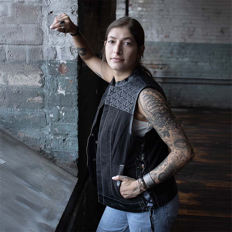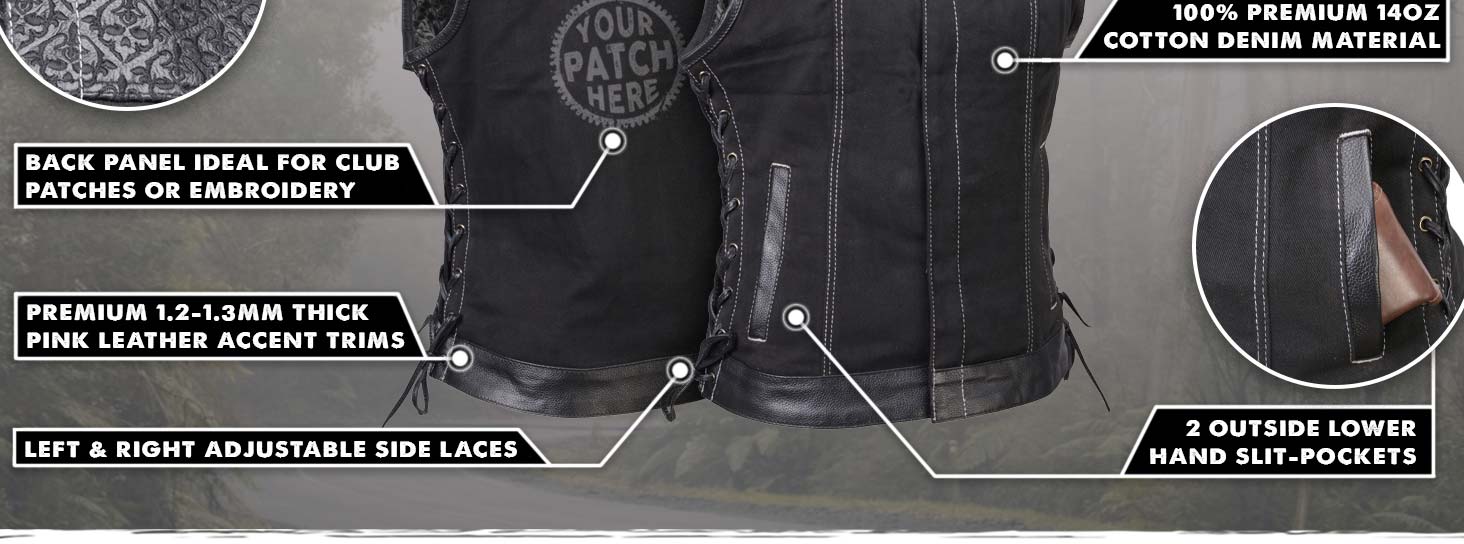 Milwaukee Leather MDL4020 Women's Classic Black ‘6 Pocket’ Side Lace Denim Vest