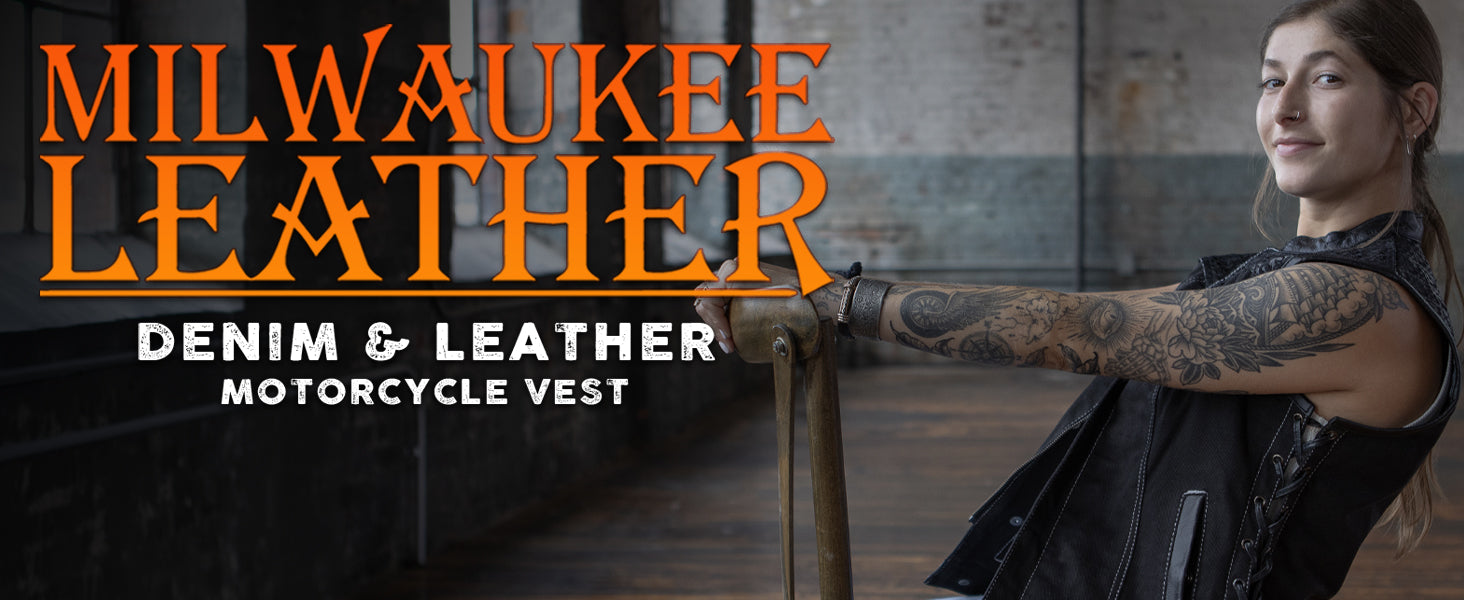 Milwaukee Leather MDL4000 Women's Black Denim 4-Snap Button Closure Motorcycle Rider Vest