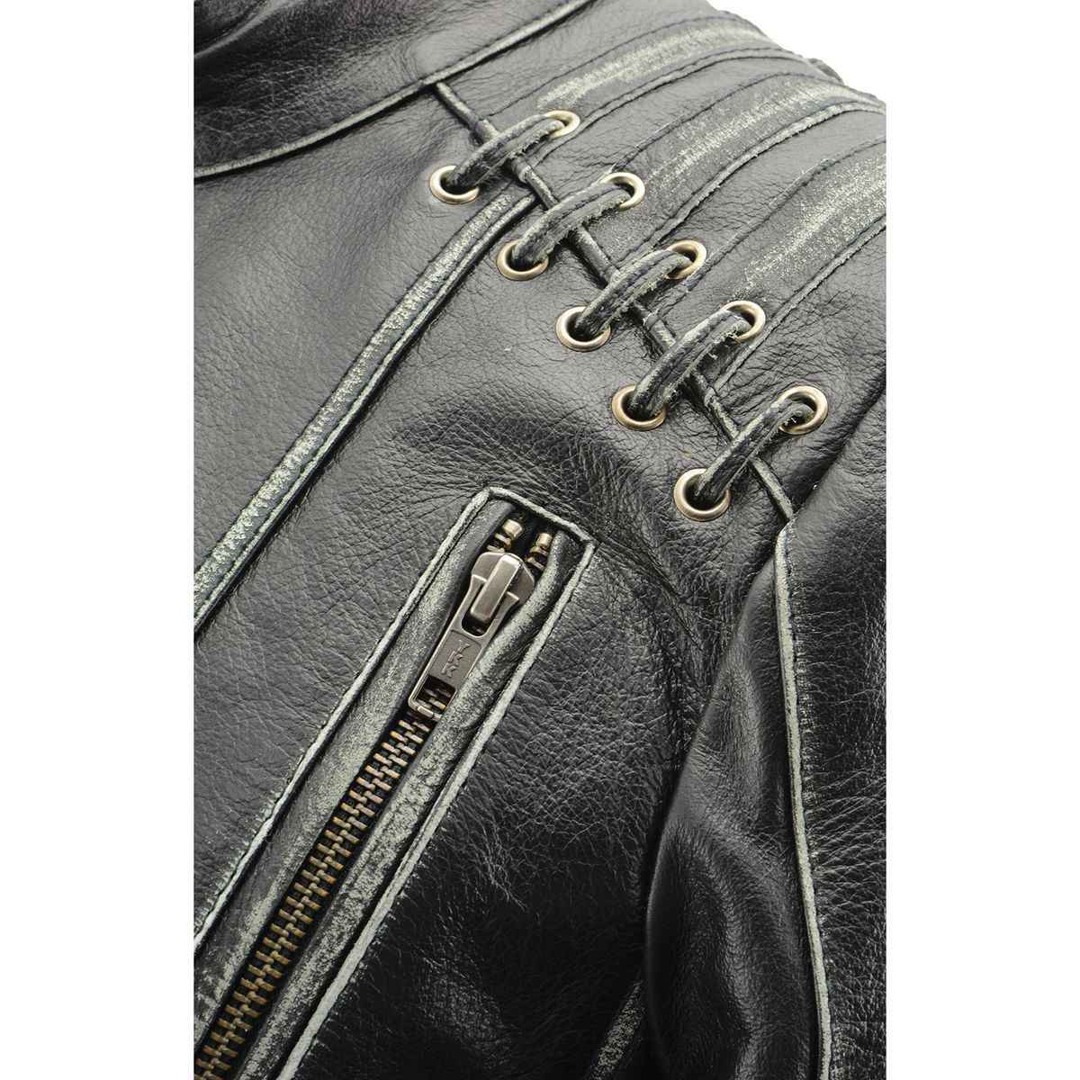 Milwaukee Leather MLL2526 Women's 'Elegant' Distressed Gray Detail Laced Leather Jacket