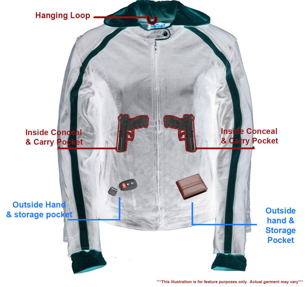 Designed for versatility and for style with its pink striping on the arms, this Milwaukee Leather genuine leather motorcycle jacket is an excellent choice that is wearable in all seasons. This jacket features a removable hoodie on the inside that can be worn separately or paired with the jacket as a warm interior layer. Features close-able air vents on the shoulders and two back air vents for maximum temperature control as well as reflective piping on the arms and shoulders for maximum visibility at night. Pair with leather pants and some great leather boots, and there is no one messing with that. Do not forget a pair of matching leather gloves.