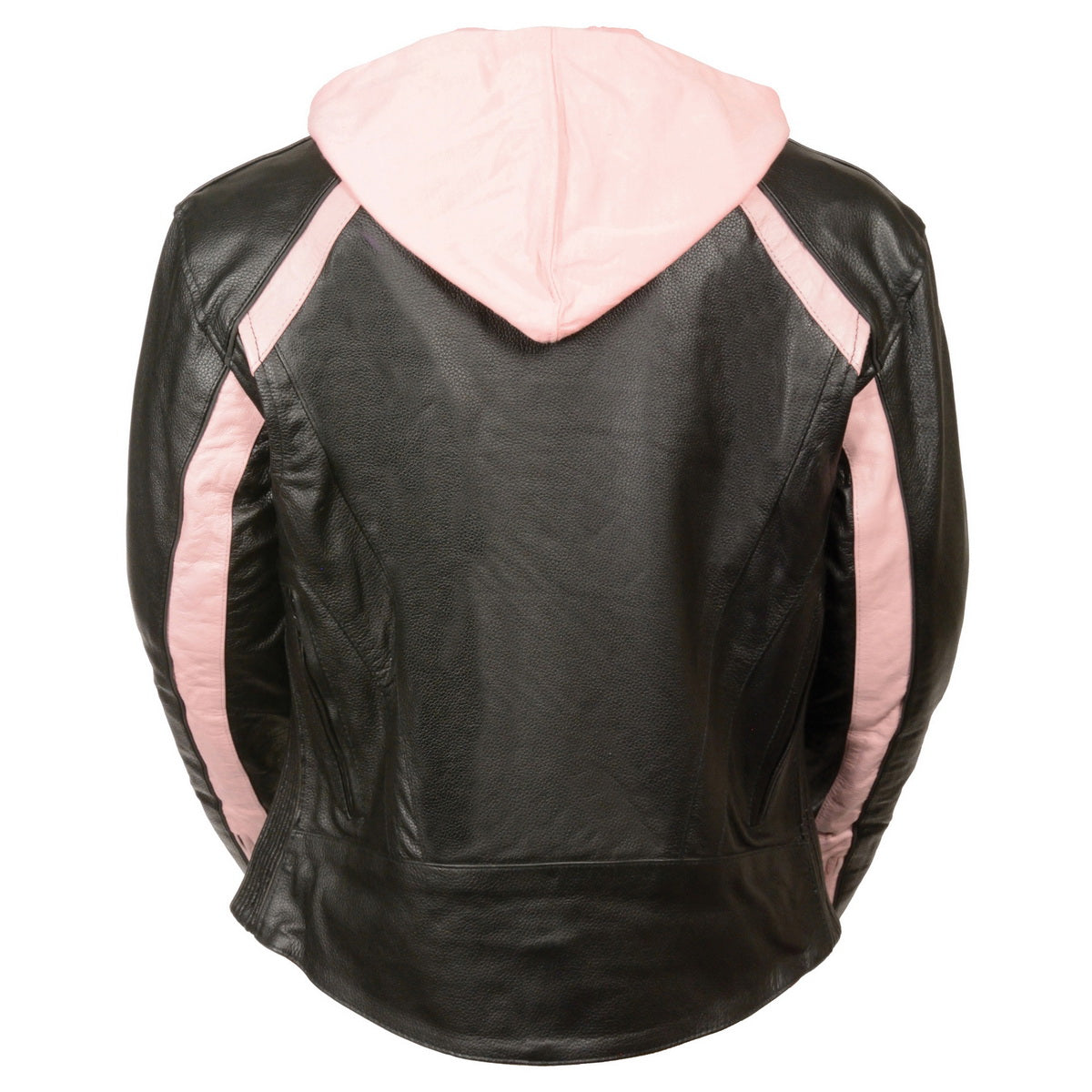 Milwaukee Leather SH1951 Women's Black and Pink Striped Leather Jacket with Zip-Out Hoodie