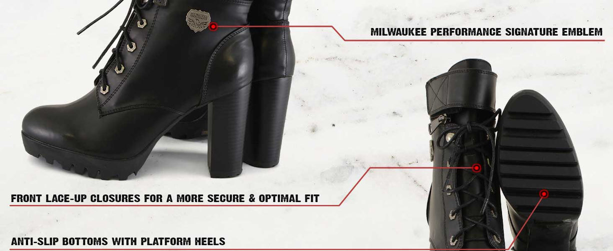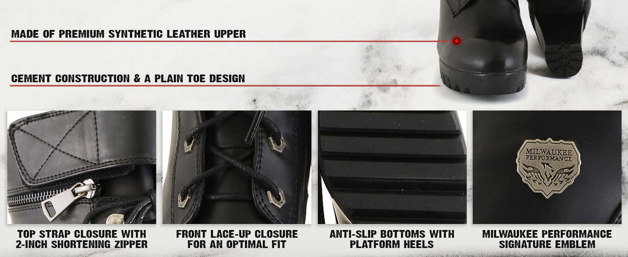 Milwaukee Leather Women's Black Triple Strap Fashion Boots with Platform Wedge MBL9437