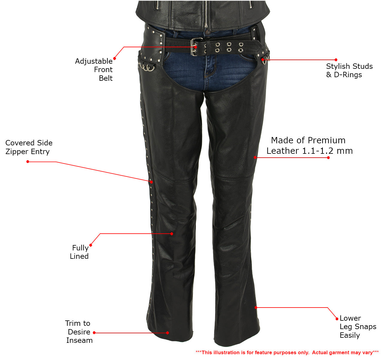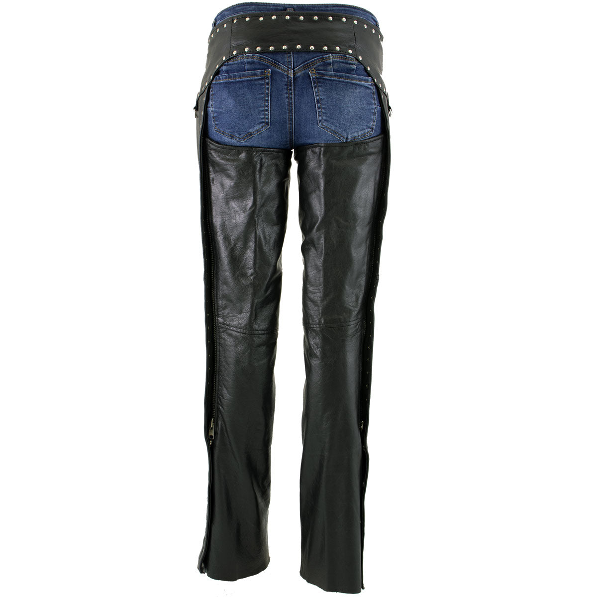 Milwaukee Leather LKL6705 Women's Classic Black Leather Motorcycle Biker Rider Chaps w/ Rivet Detail