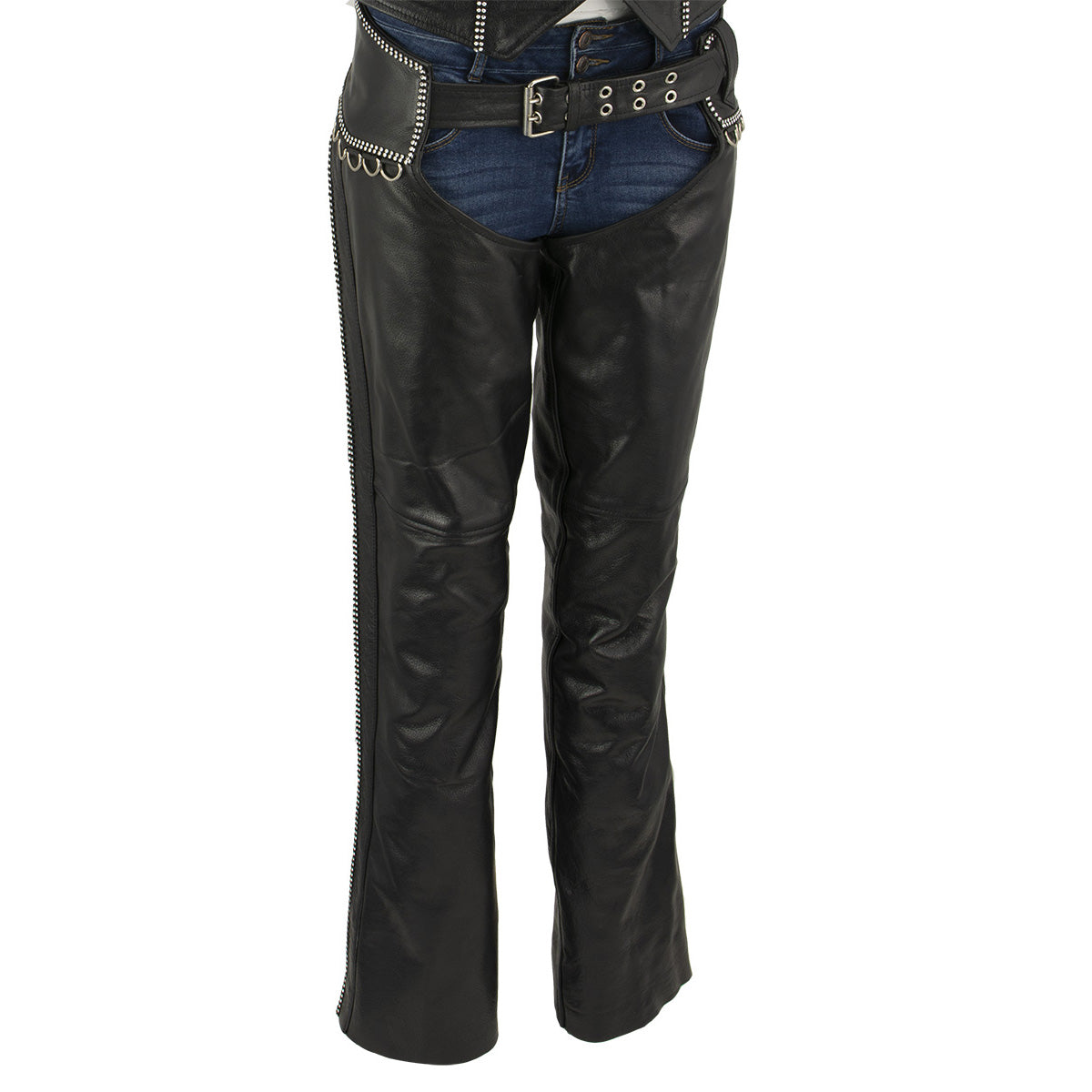 Milwaukee Leather LKL6706 Women's Classic Black Leather Motorcycle Biker Rider Chaps w/ Bling Detail