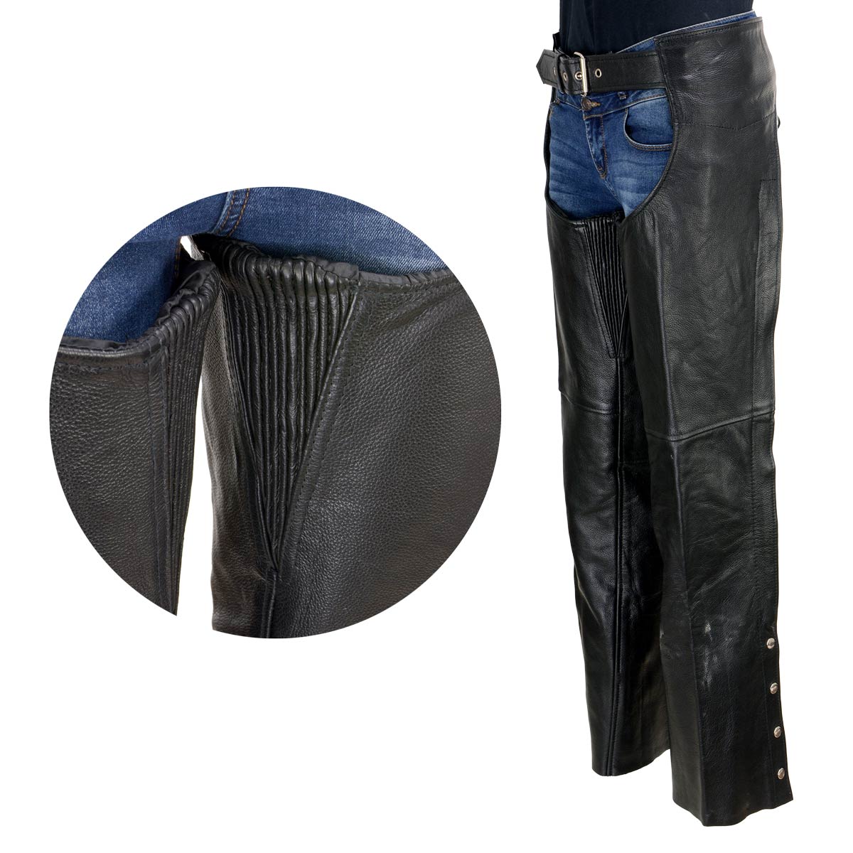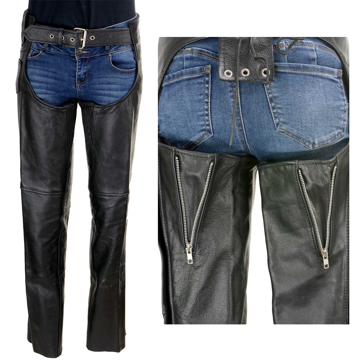 Milwaukee Leather LKL6707 Women's Black Premium Leather Dual Comfort Motorcycle Rider Chaps