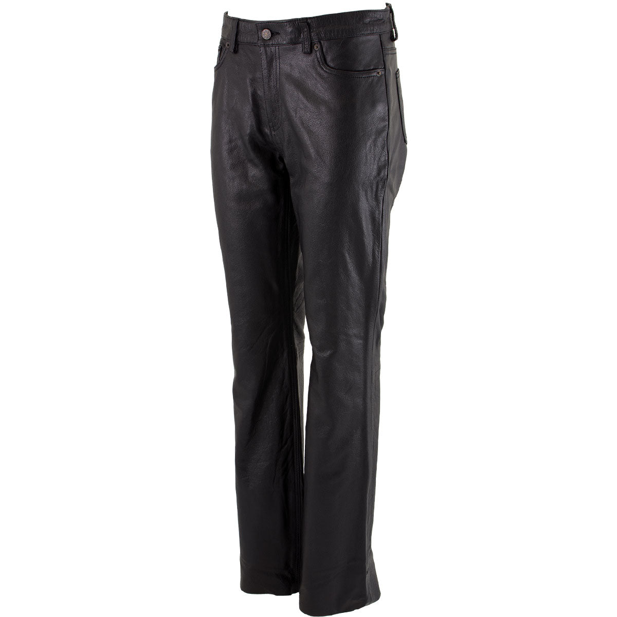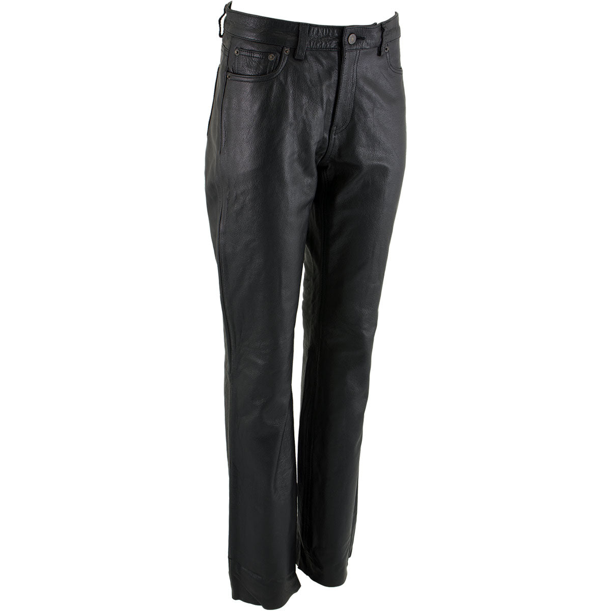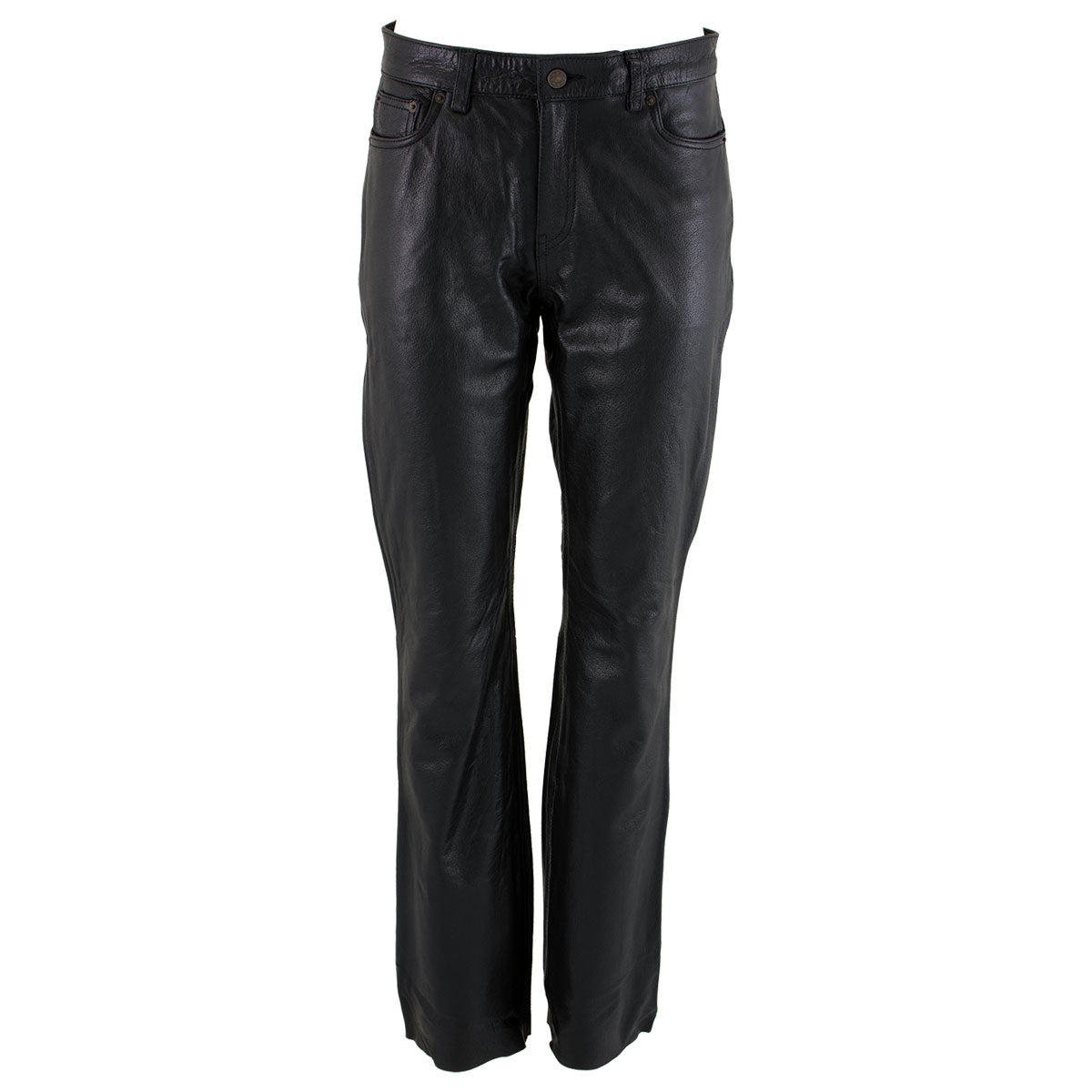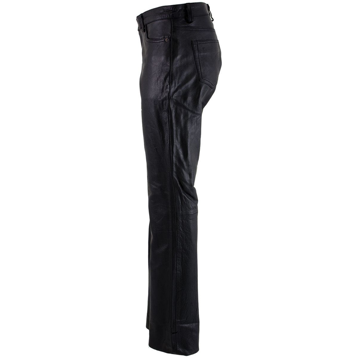 If You Like Wearing Jeans and Prefer a Slim, But Not Too Tight Fit, Then You Will Love Our Milwaukee Leather Ladies 'Nubile' Classic Black Buffalo Leather Pants. A Stylish Pair of Leather Pants Made of Premium Buffalo Leather with a Smooth Texture. These Fit and Have the Same Design as Slim Straight Jeans, But with Premium Buffalo Leather Instead of Denim. These Pants Are an Ideal Companion to Any of Our Black Leather Jackets, Coats, or Boots. Features Five Pockets, Bronze Zipper Fly with Button Closure, and a Boot Cut Leg Opening.
