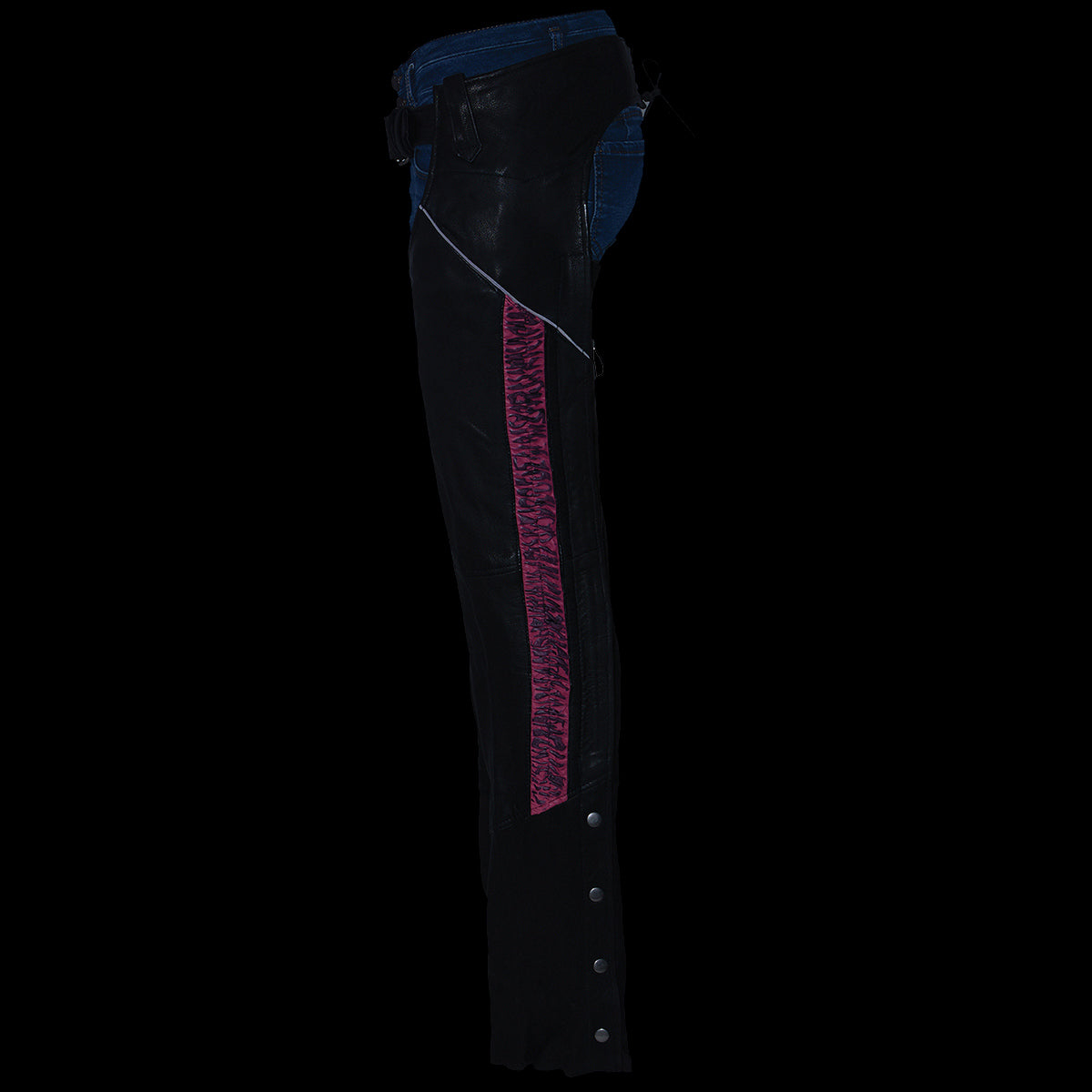 Milwaukee Leather MLL6501 Women’s Black and Pink Lightweight Low-Rise Chap with Crinkled Leg Striping