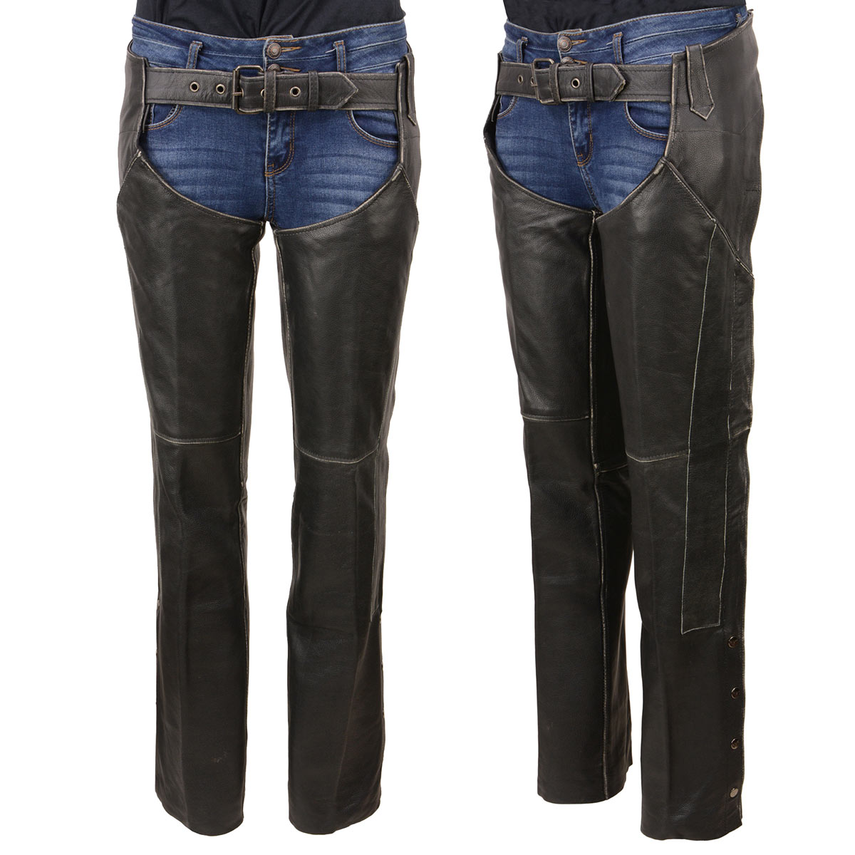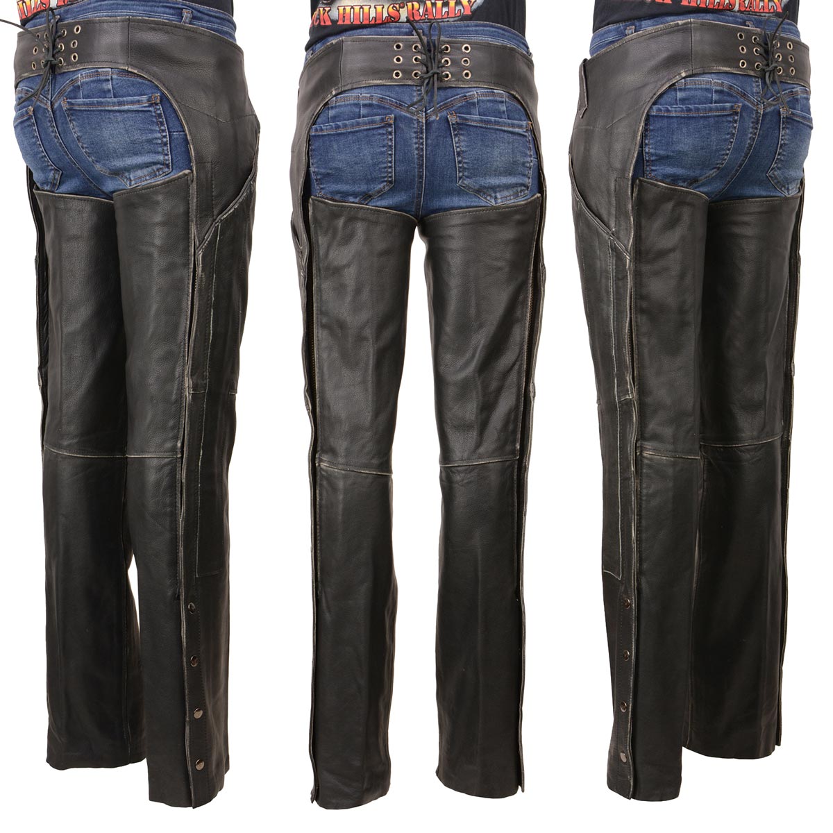 Milwaukee Leather MLL6516 Women's Classic Black Rub-Off Low Rise Premium Leather Chaps