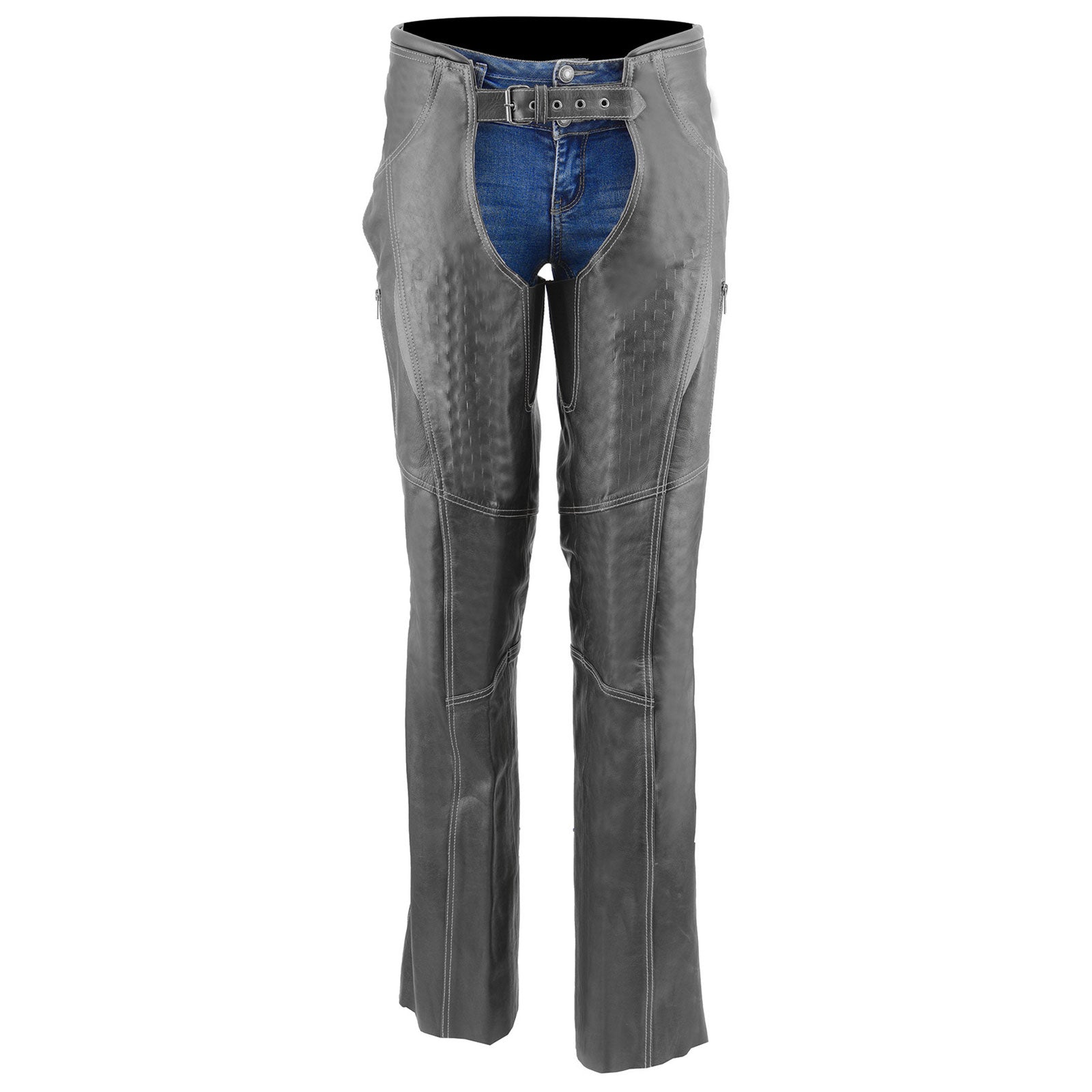Milwaukee Leather MLL6525 Women ‘Laser Cut’ Distressed Black and Grey Motorcycle Leather Chaps