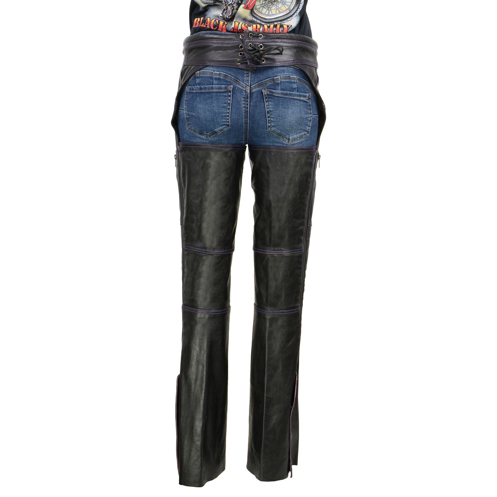 Milwaukee Leather MLL6525 Women ‘Laser Cut’ Distressed Black and Grey Leather Chaps