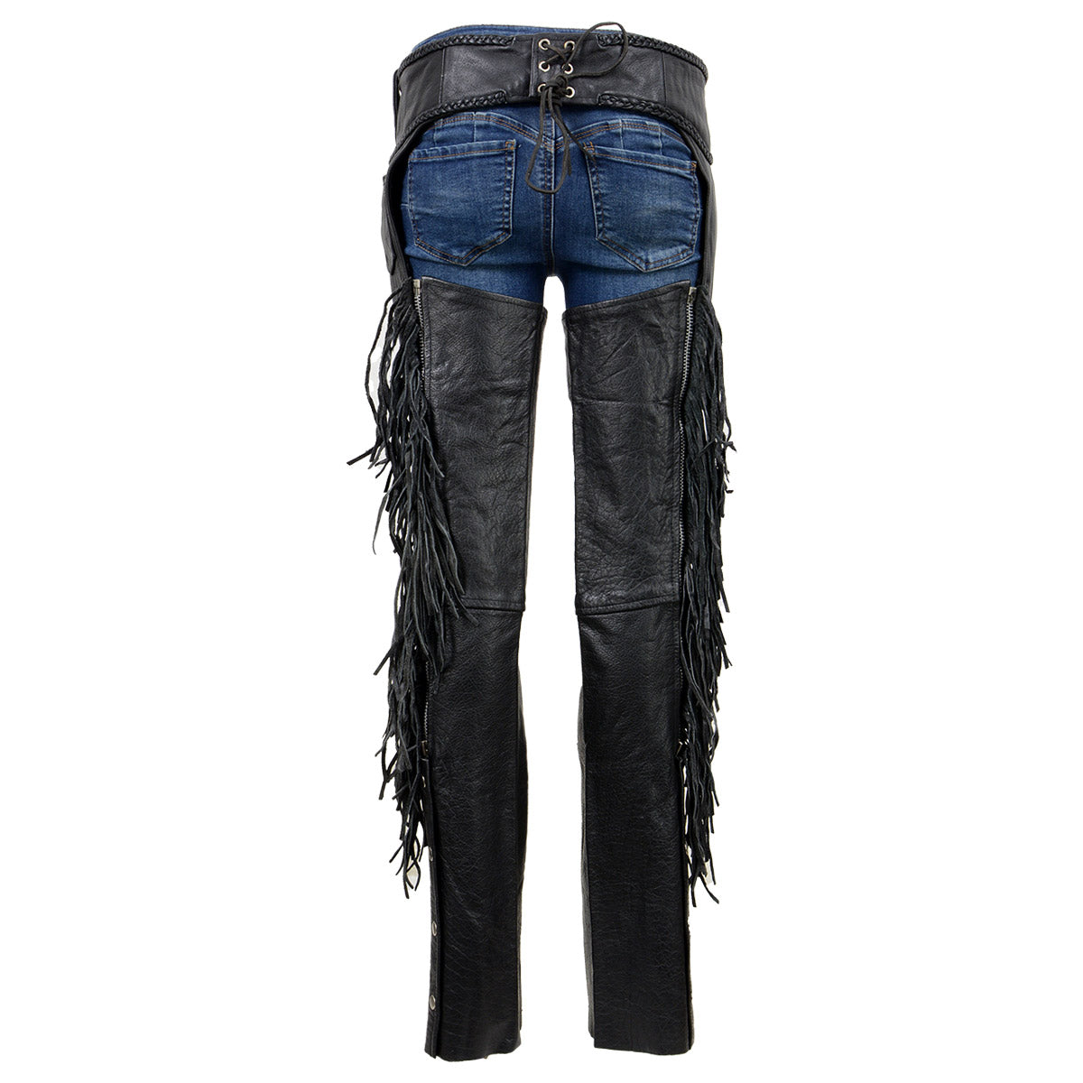 Milwaukee Leather SH1116 Women's Classic Braided & Fringed Leather Motorcycle Chaps w/ Rose Embroidery