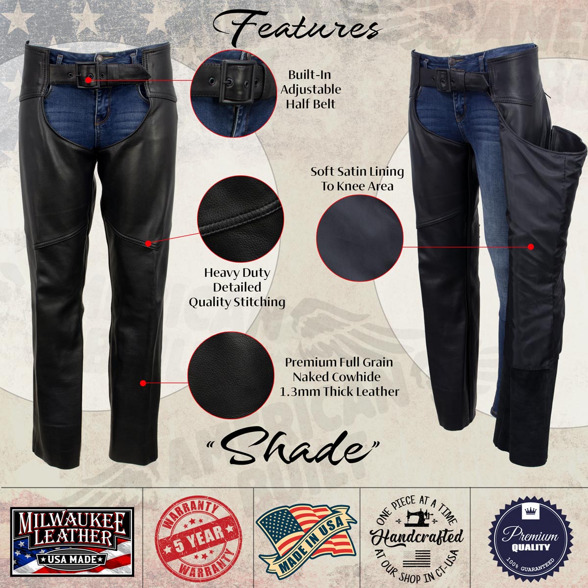 Milwaukee Leather USA MADE MLCHL5001 Women's Black 'Shade' Premium Leather Motorcycle Chaps