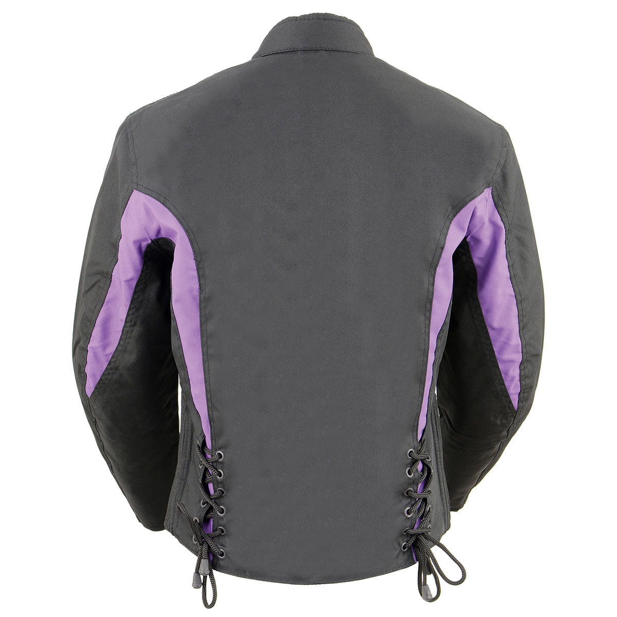 Nexgen SH2188 Women's Black and Purple Textile Motorcycle Riding Jacket with Side Stretch and Lacing