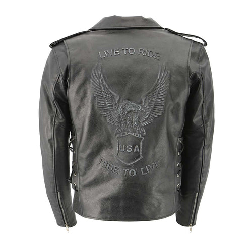 Event Leather EL5411 Men's Black Classic Side Lace Motorcycle Leather Jacket – Motorcycle Riding Jackets