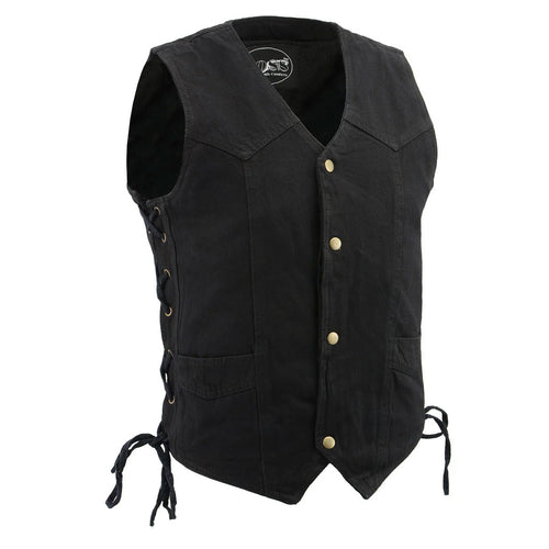 M Boss Motorcycle Apparel BOS13003 Men's Black Denim Motorcycle Side Lace Vest with Quick Draw Pocket
