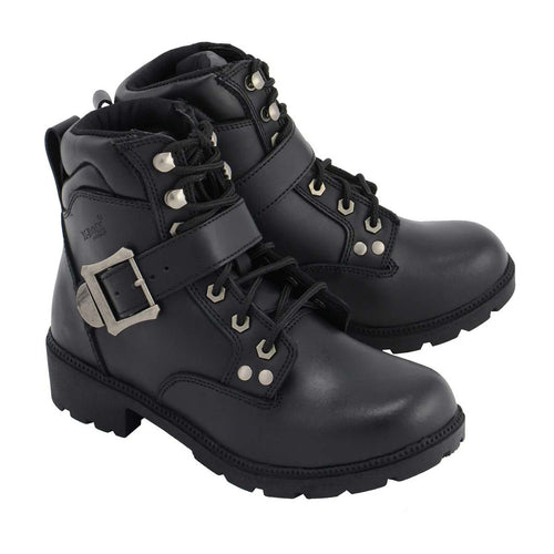 M Boss Apparel BOS49301 Women's 7-Inch Black Road Captain Leather Motorcycle Boots
