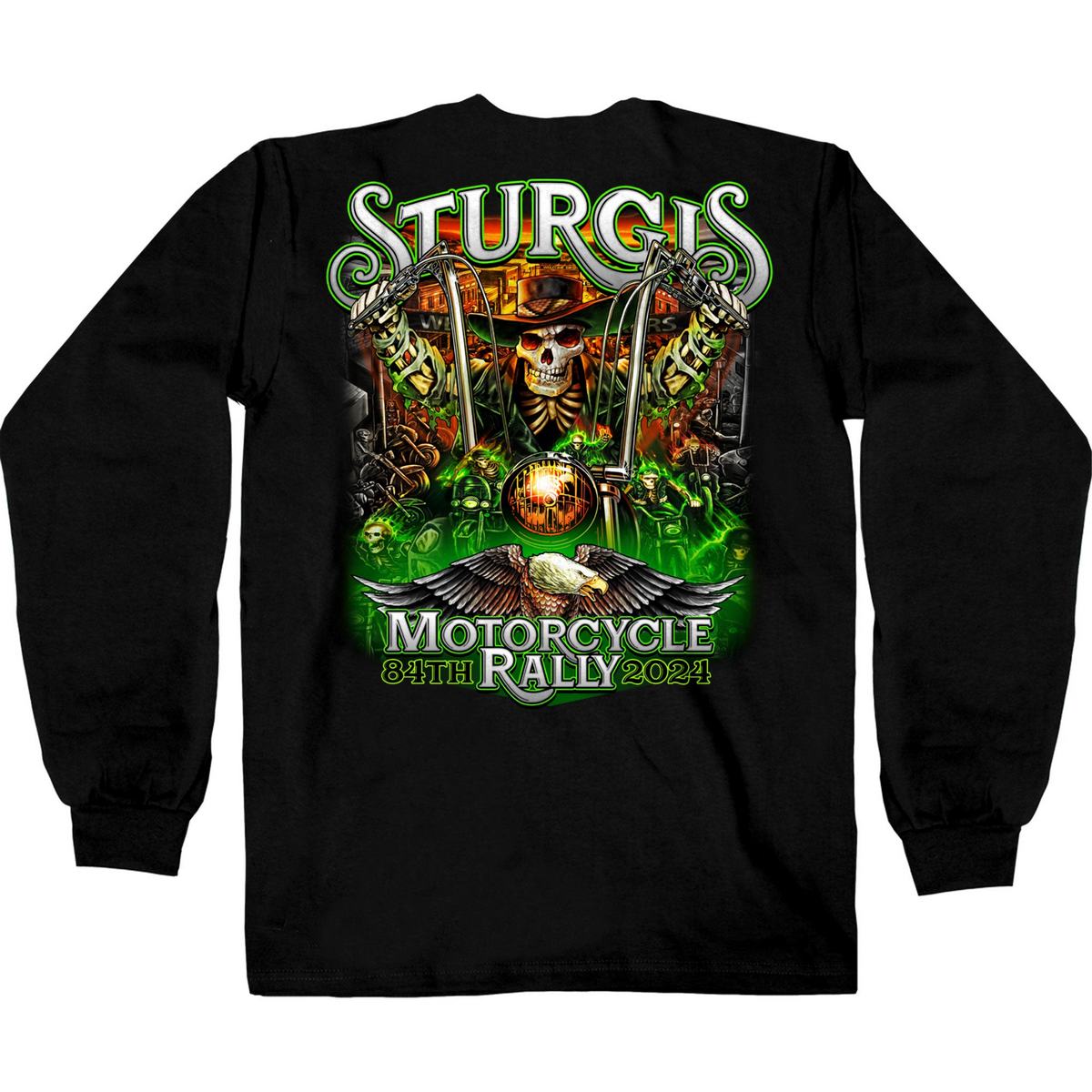 2024 Sturgis #1 Men's Design Eagle & Skull Green Motorcycle Rally T-Shirt SPB1138