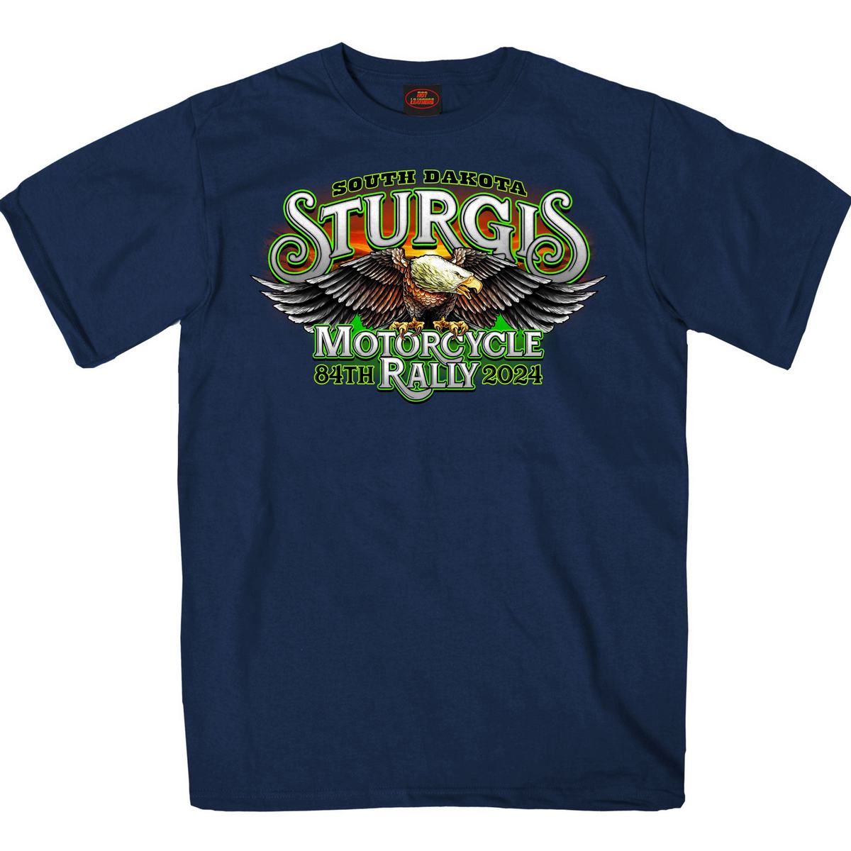 2024 Sturgis #1 Men's Design Eagle & Skull Navy Motorcycle Rally T-Shirt SPB1139