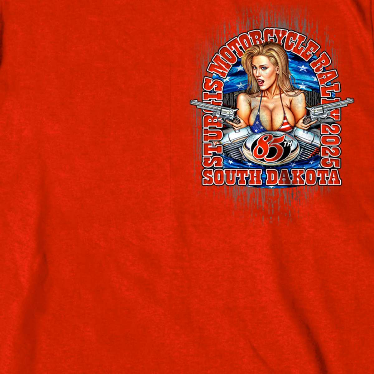2025 Sturgis Motorcycle Rally Motor Pin UP Red SS T-Shirt SPB1167