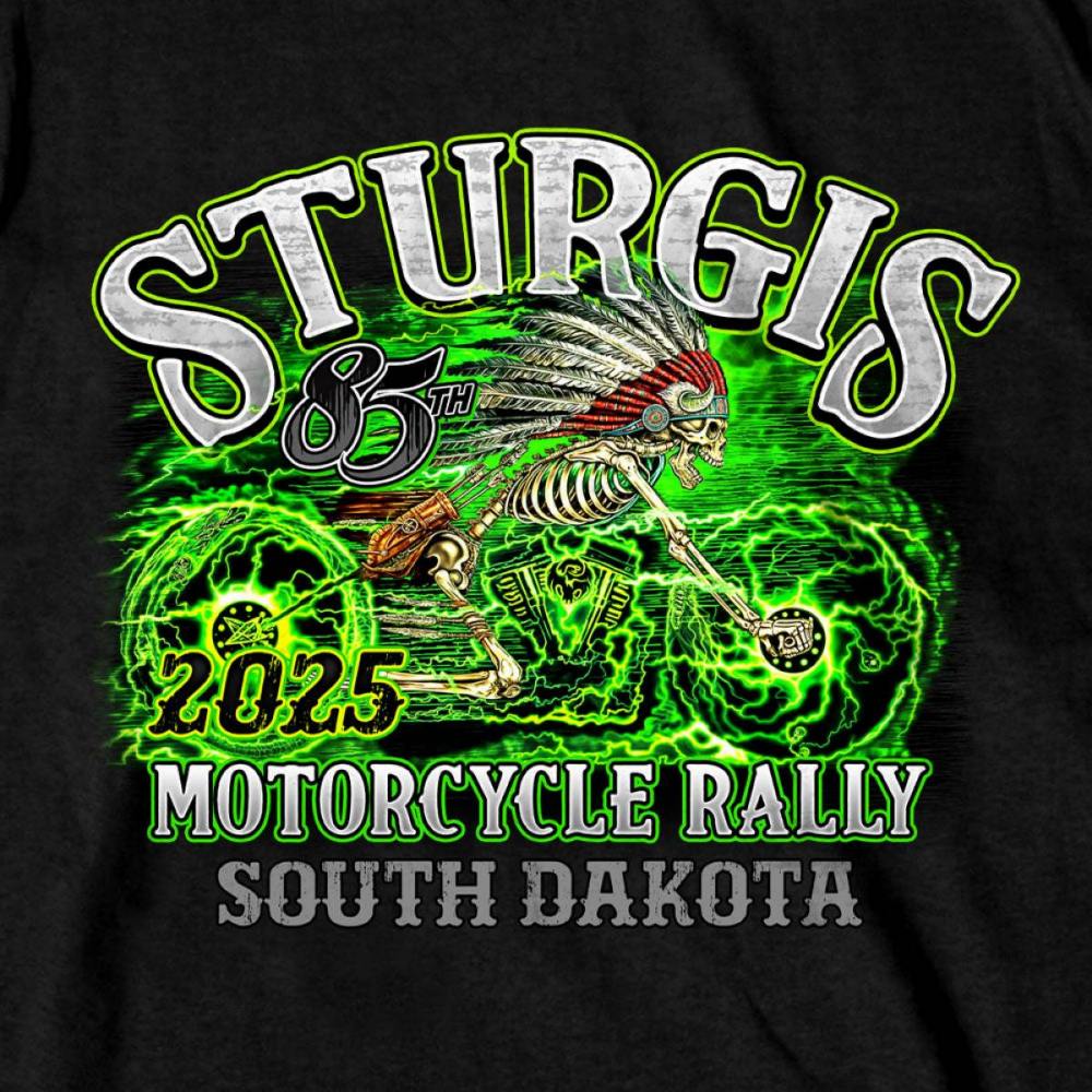 2025 Sturgis Motorcycle Rally Skeleton Chief Black Men's T-Shirt