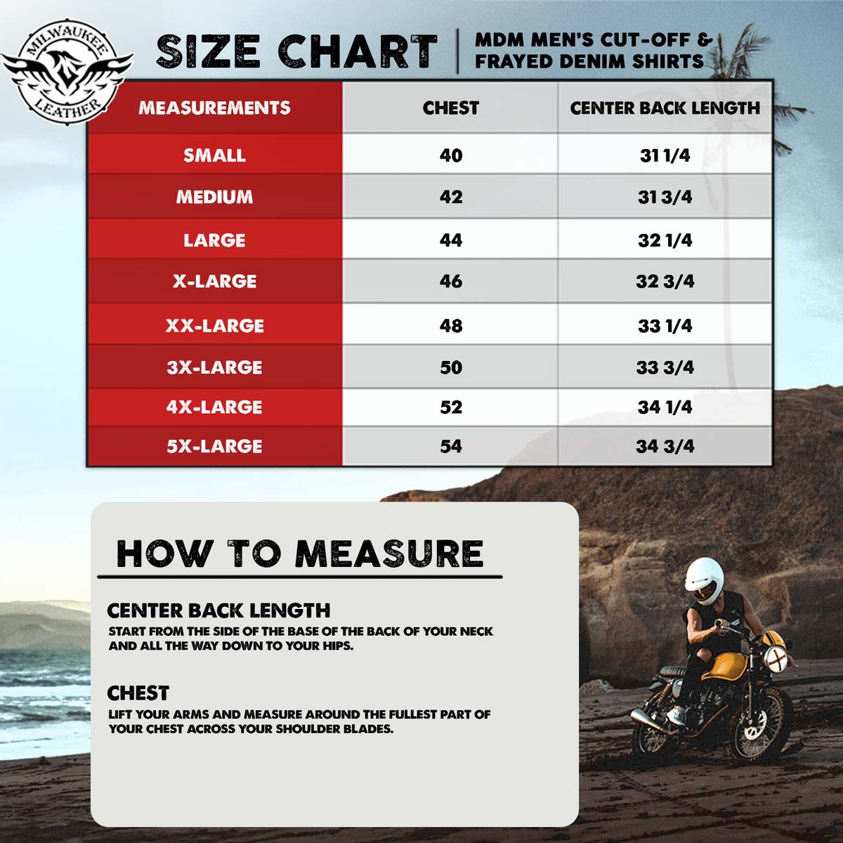 Milwaukee Leather DM4007 Men's Red Lightweight Denim Shirt with Frayed Cut Off Sleeveless