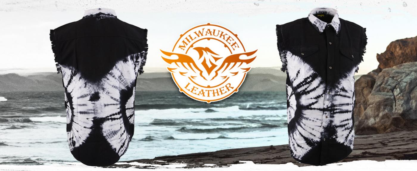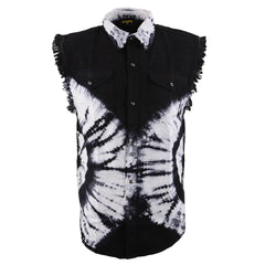 Milwaukee Leather DM4004 Men's Grey Lightweight Denim Shirt with Sleeveless Frayed Cut Off
