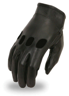 First Manufacturing FI141GEL Men’s Black Leather Driving Gloves with Gel Palm