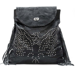 Hot Leathers BPA1022 Ladies Black Leather Studded Backpack with Fringe